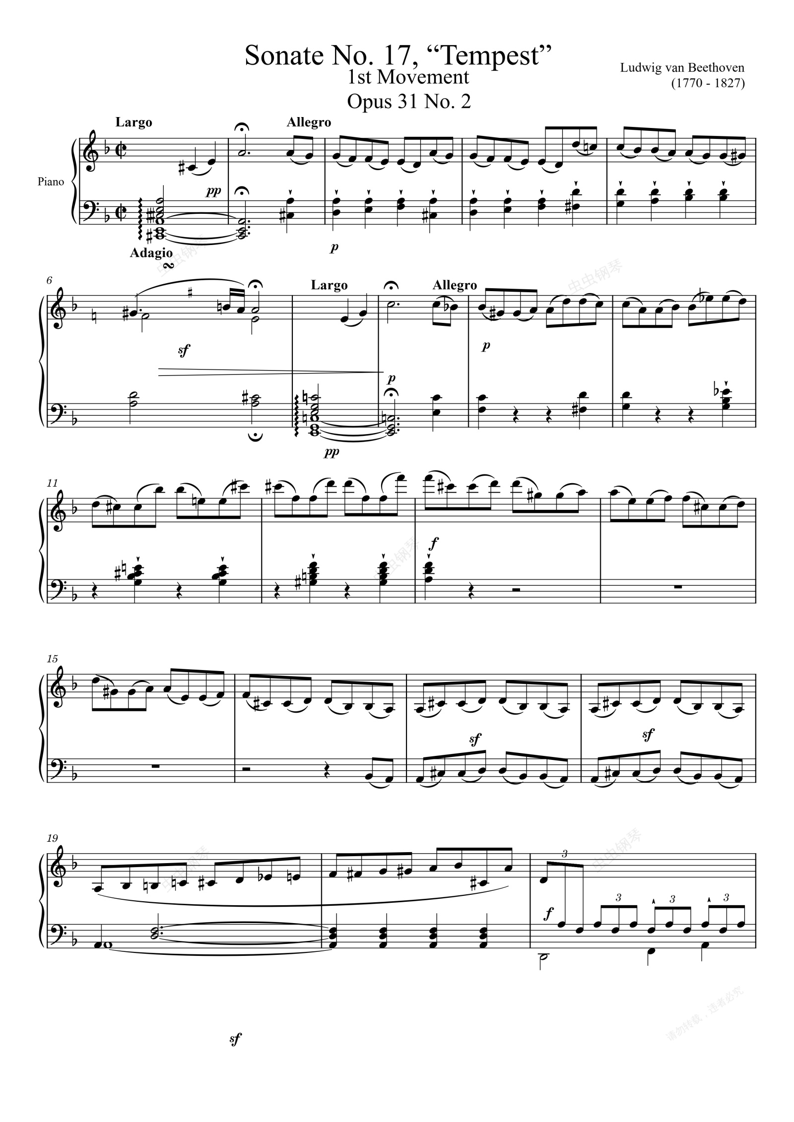钢琴谱:贝多芬暴风雨奏鸣曲 第二乐章Sonate No. 17, “Tempest” 1st Movement
