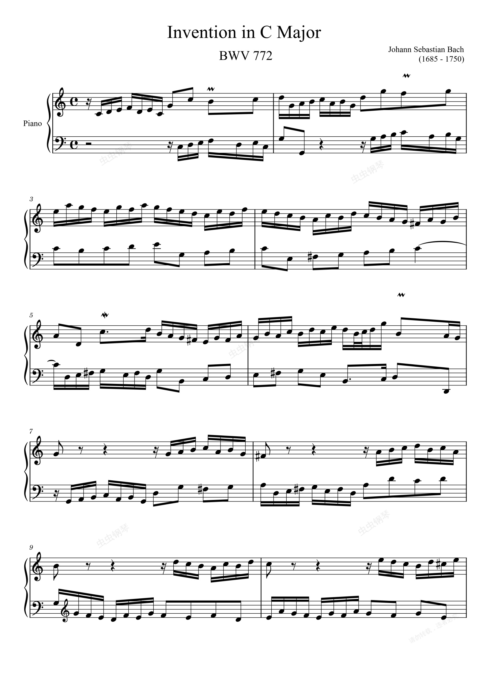 钢琴谱:巴赫 二部创意曲Invention BWV 772 in C Major