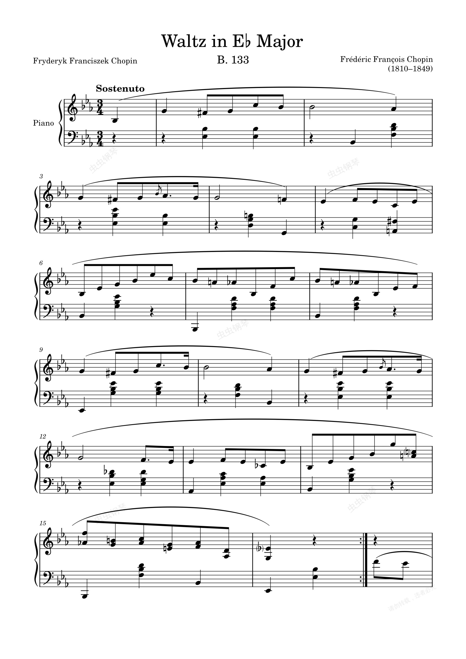 钢琴谱:肖邦 降E大调夜曲 Waltz B. 133 in E♭ Major – Chopin