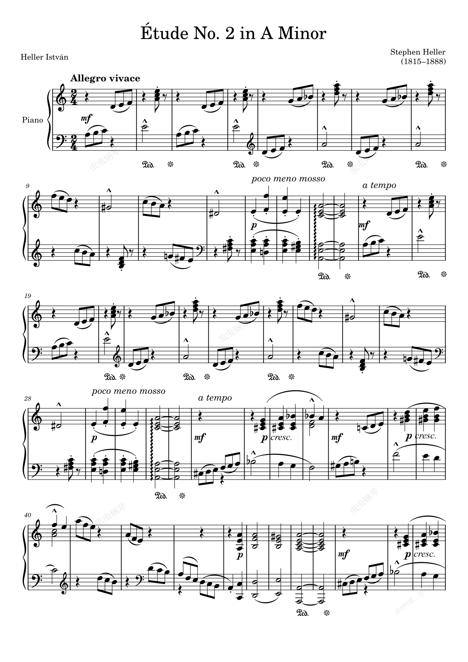 钢琴谱:Étude Opus 45 No. 2 in A Minor – Heller