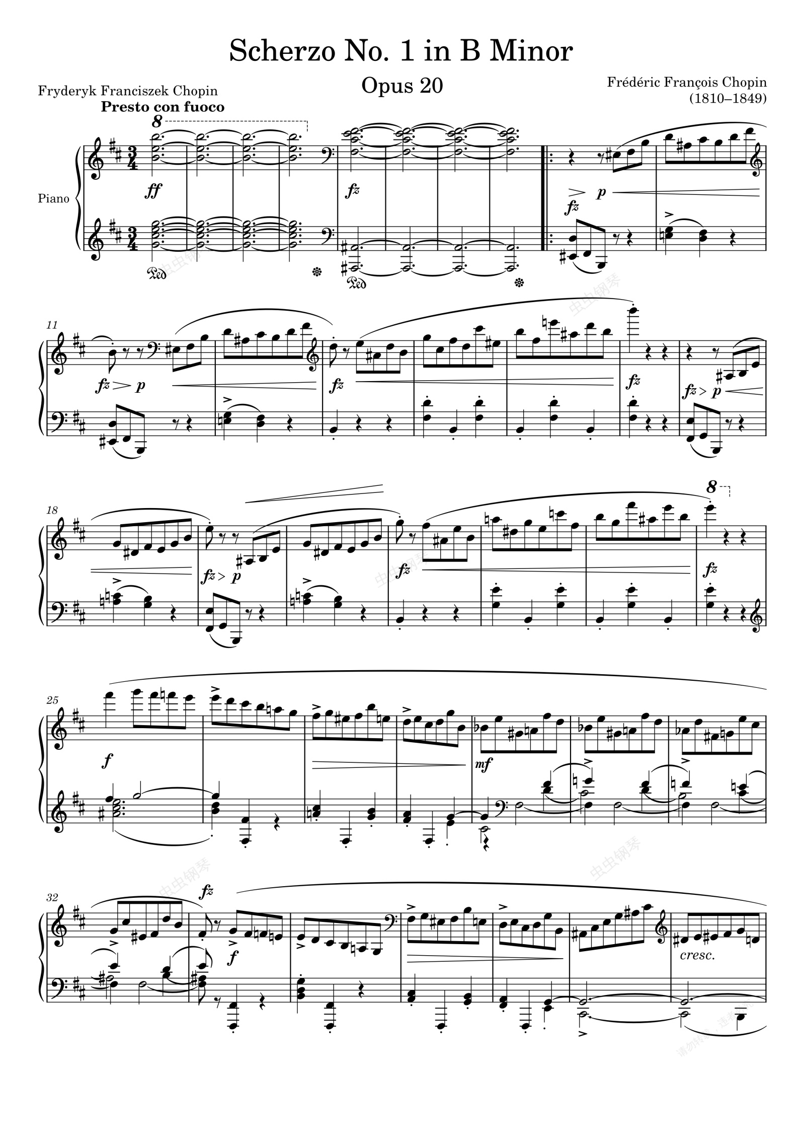 钢琴谱:B小调第1号谐谑曲 肖邦