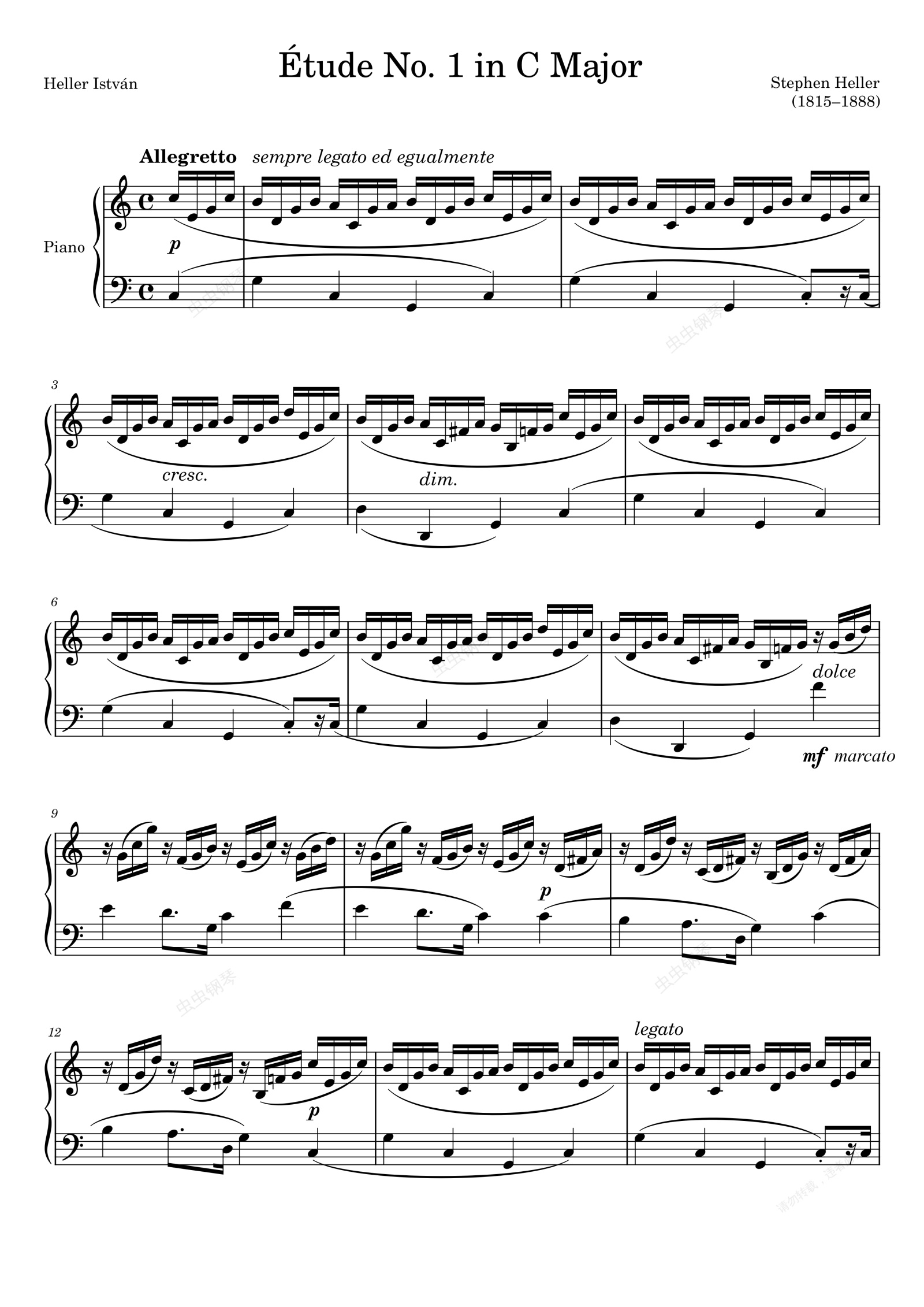钢琴谱:Étude Opus 45 No. 1 in C Major – Heller