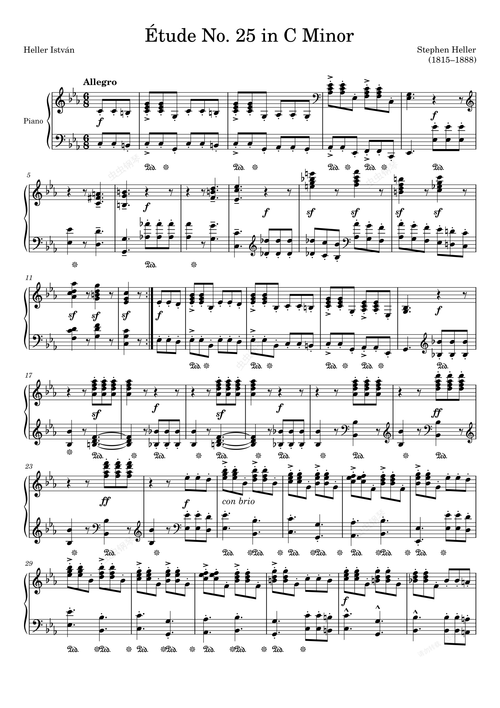 钢琴谱:Étude Opus 45 No. 25 in C Minor – Heller