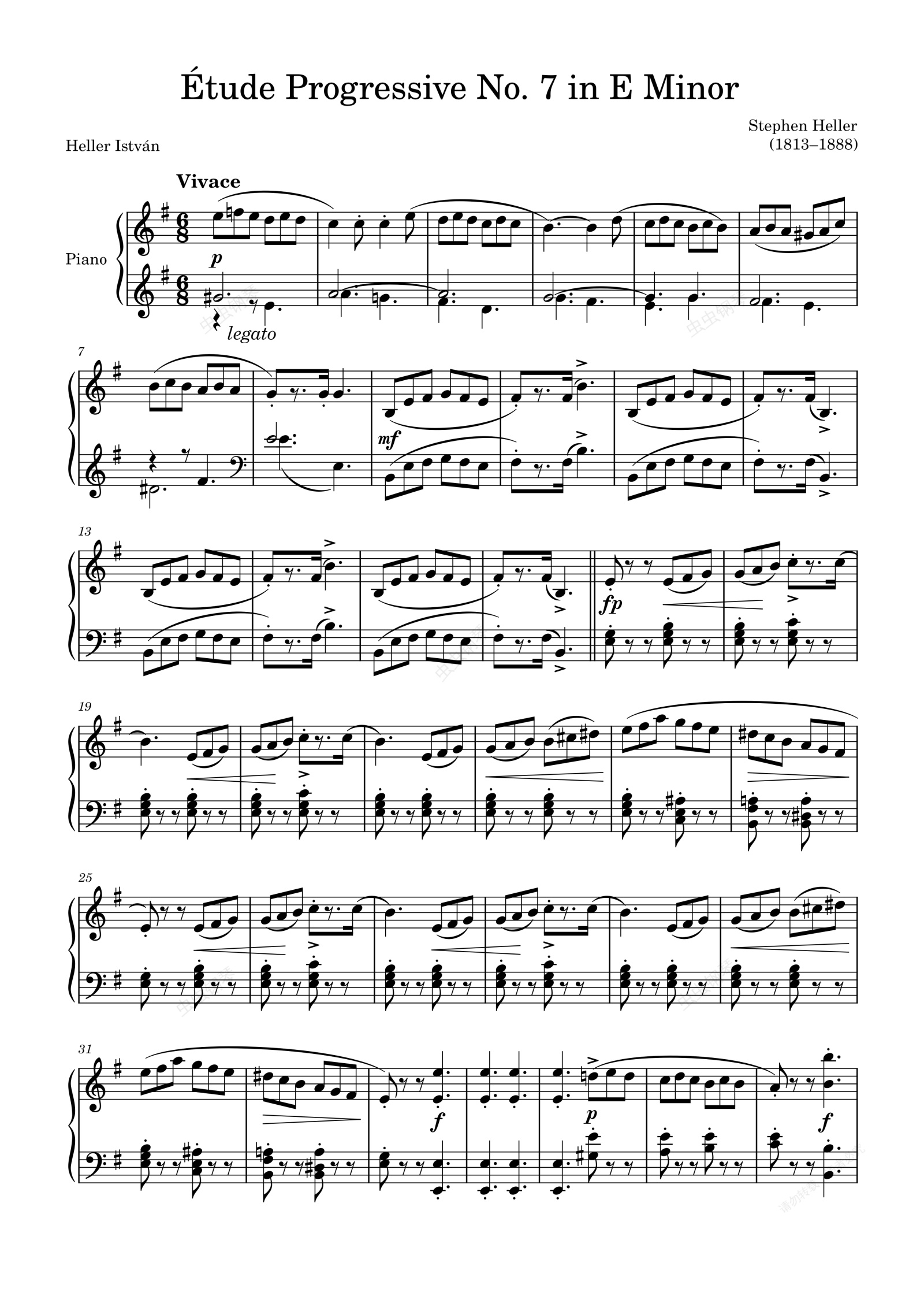 钢琴谱:Étude Progressive Opus 46 No. 7 in E Minor – Heller