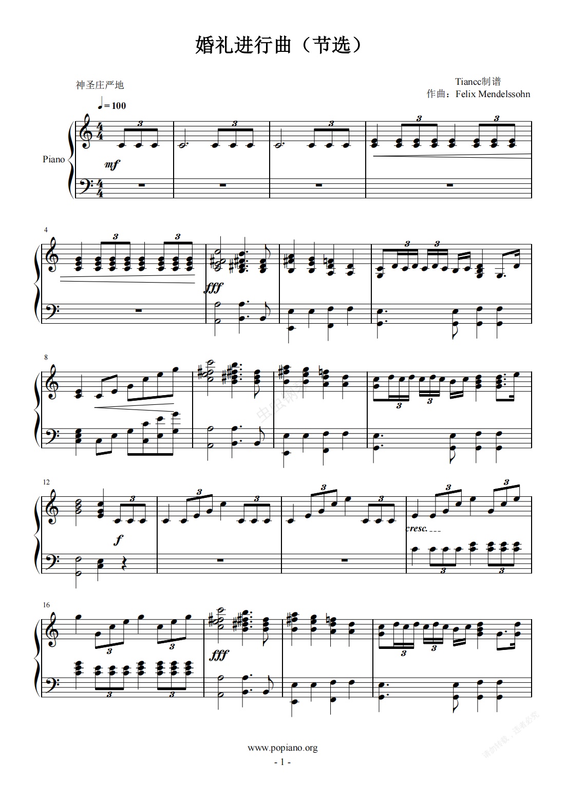 钢琴谱:《婚礼进行曲(节选)》门德尔松,完美版!849难度