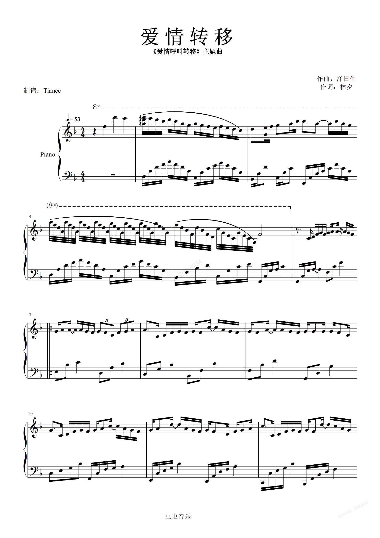 钢琴谱:爱情转移(又名富士山下),完美可弹谱