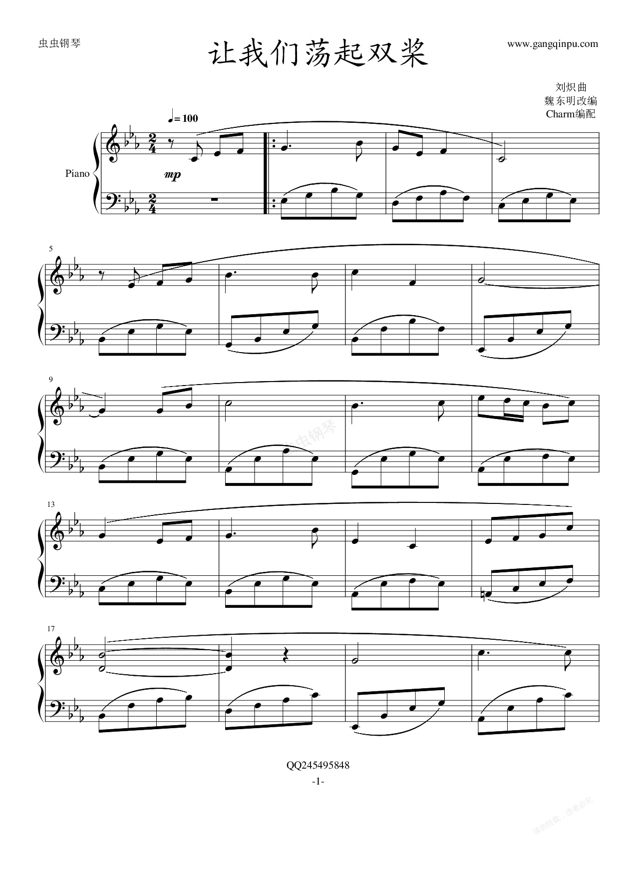 钢琴谱:让我们荡起双桨