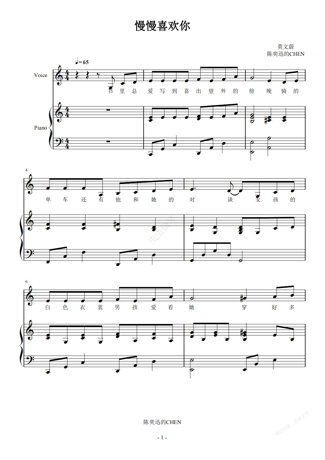 钢琴谱:慢慢喜欢你 C调完美弹唱谱【附歌词】