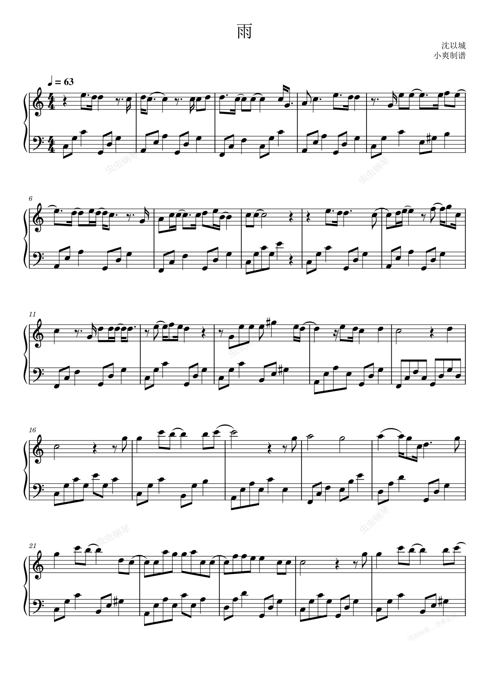 钢琴谱:雨 以家人之名 电视剧