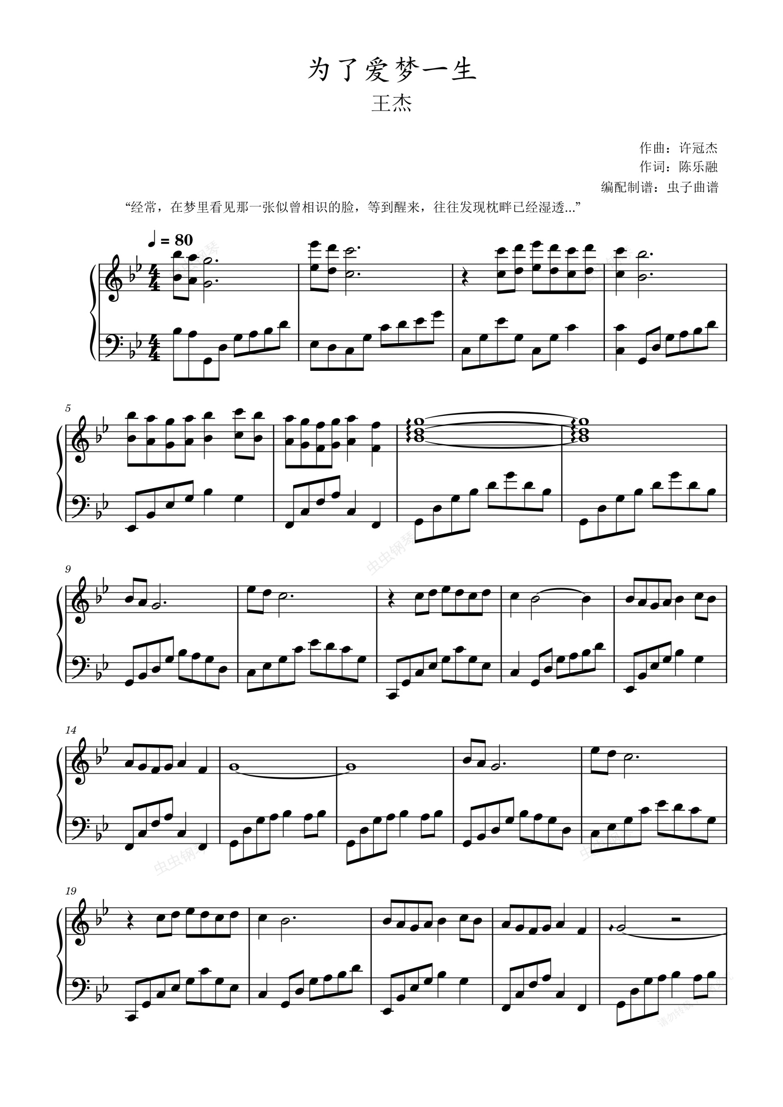 钢琴谱:为了爱梦一生(原调精心编配、伤感抒情)