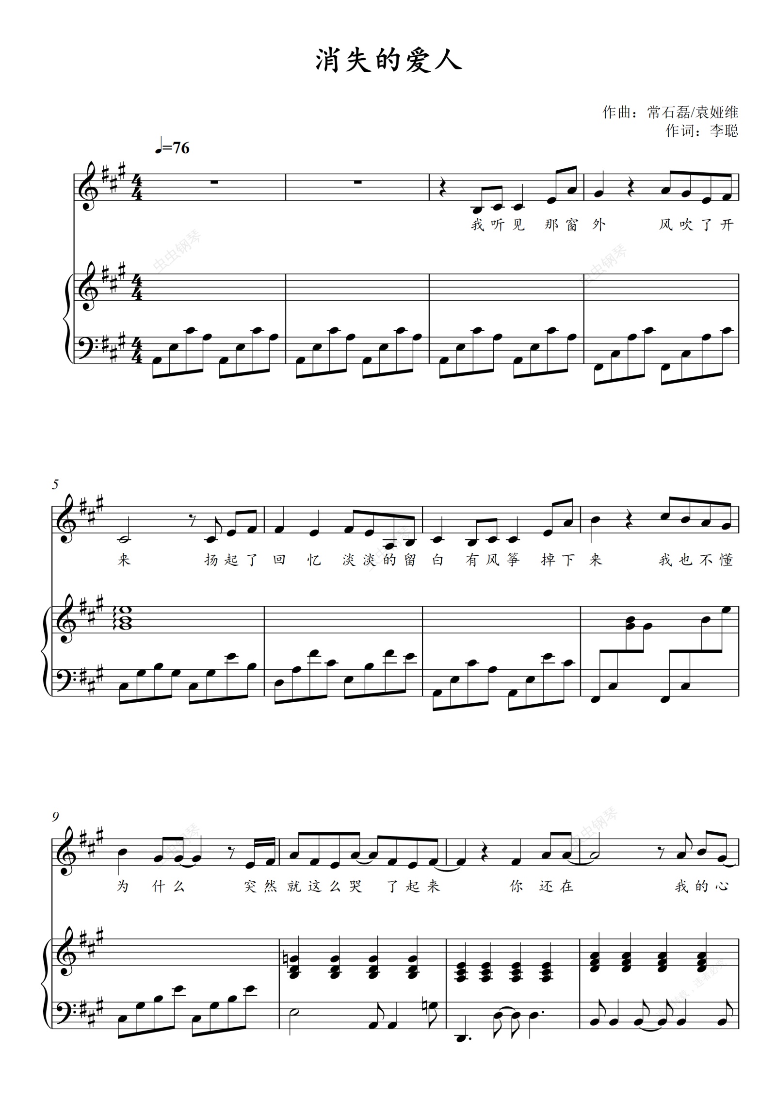 钢琴谱:《消失的爱人》- 袁娅维 弹唱(伴奏)谱 原调A