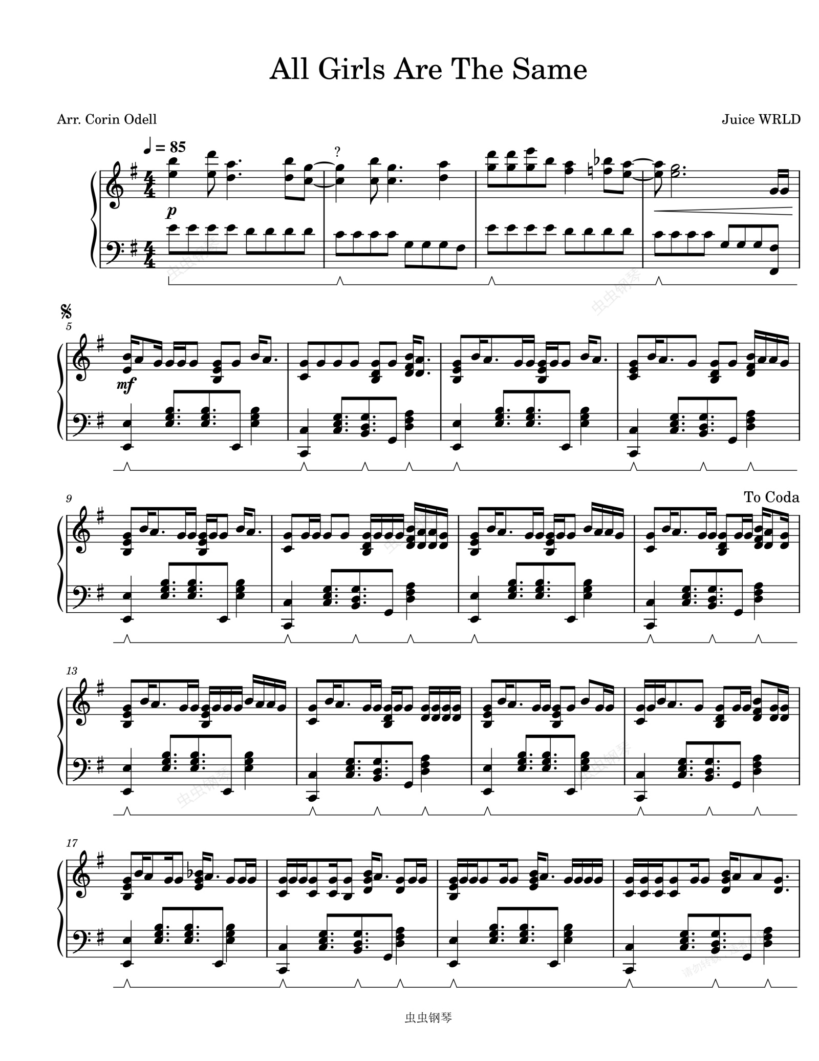 钢琴谱:All Girls Are The Same-Juice WRLD