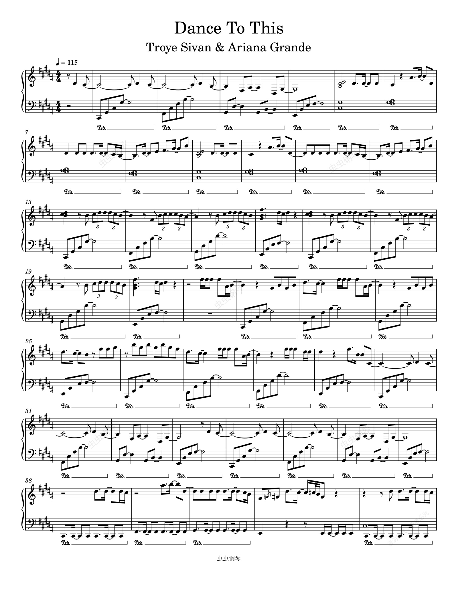钢琴谱:Dance To This-Troye Sivan/Ariana Grande