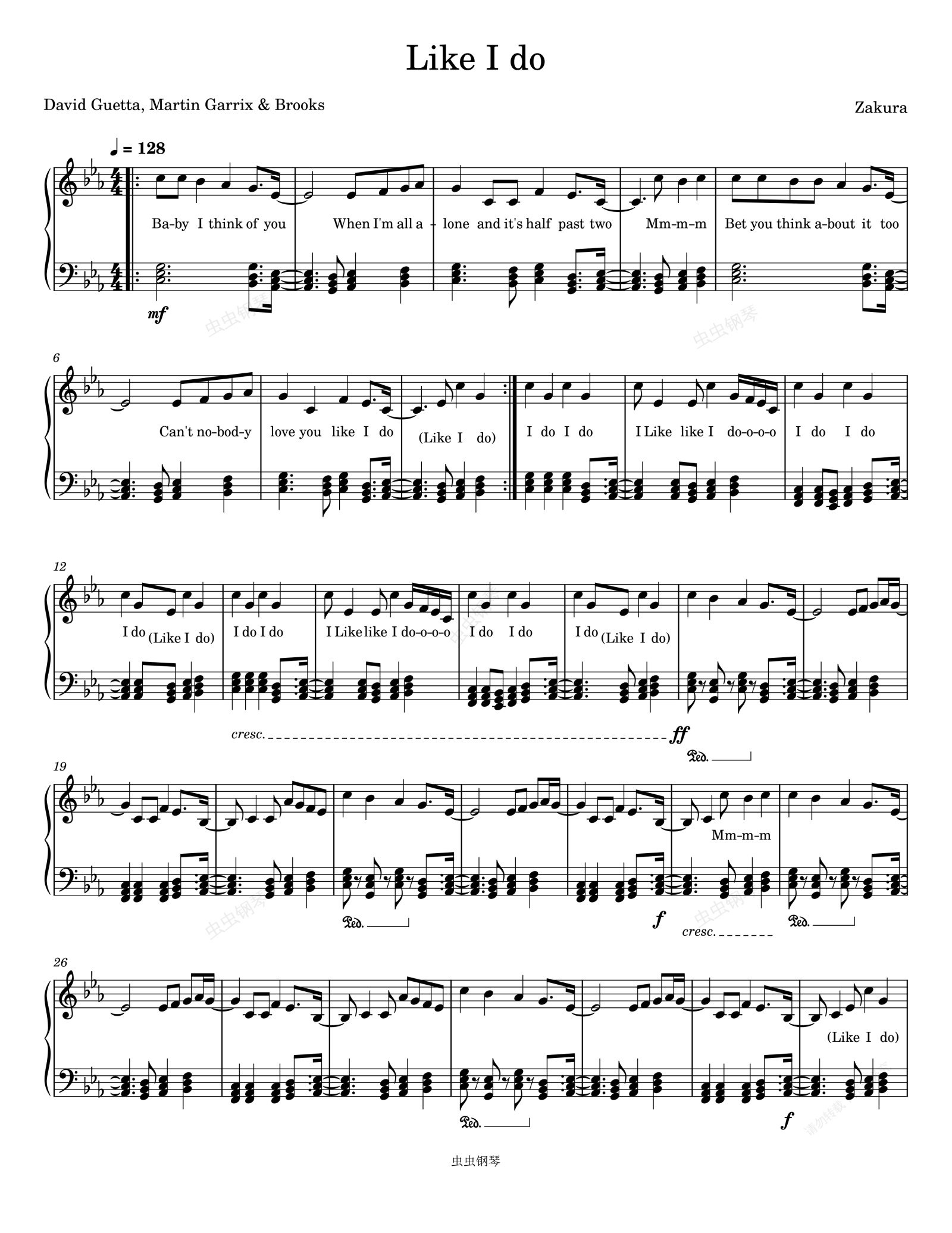 钢琴谱:Like I Do-David Guetta / Martin Garrix / Brooks