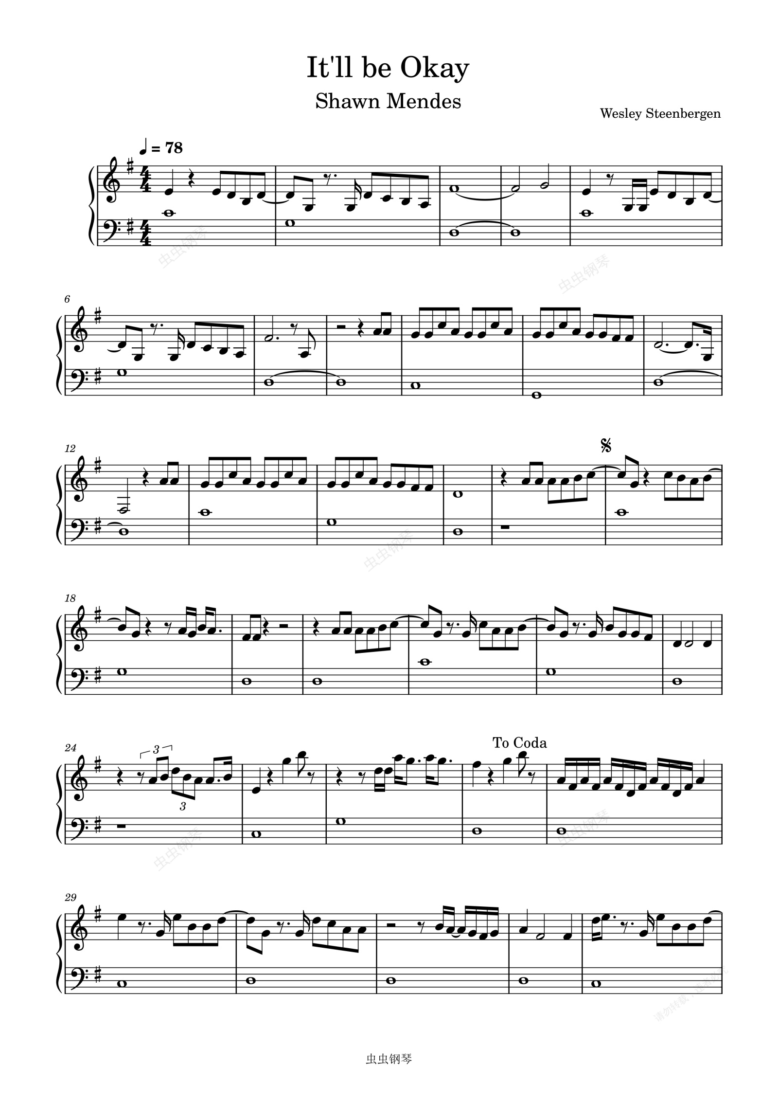 钢琴谱:It'll be Okay-Shawn Mendes
