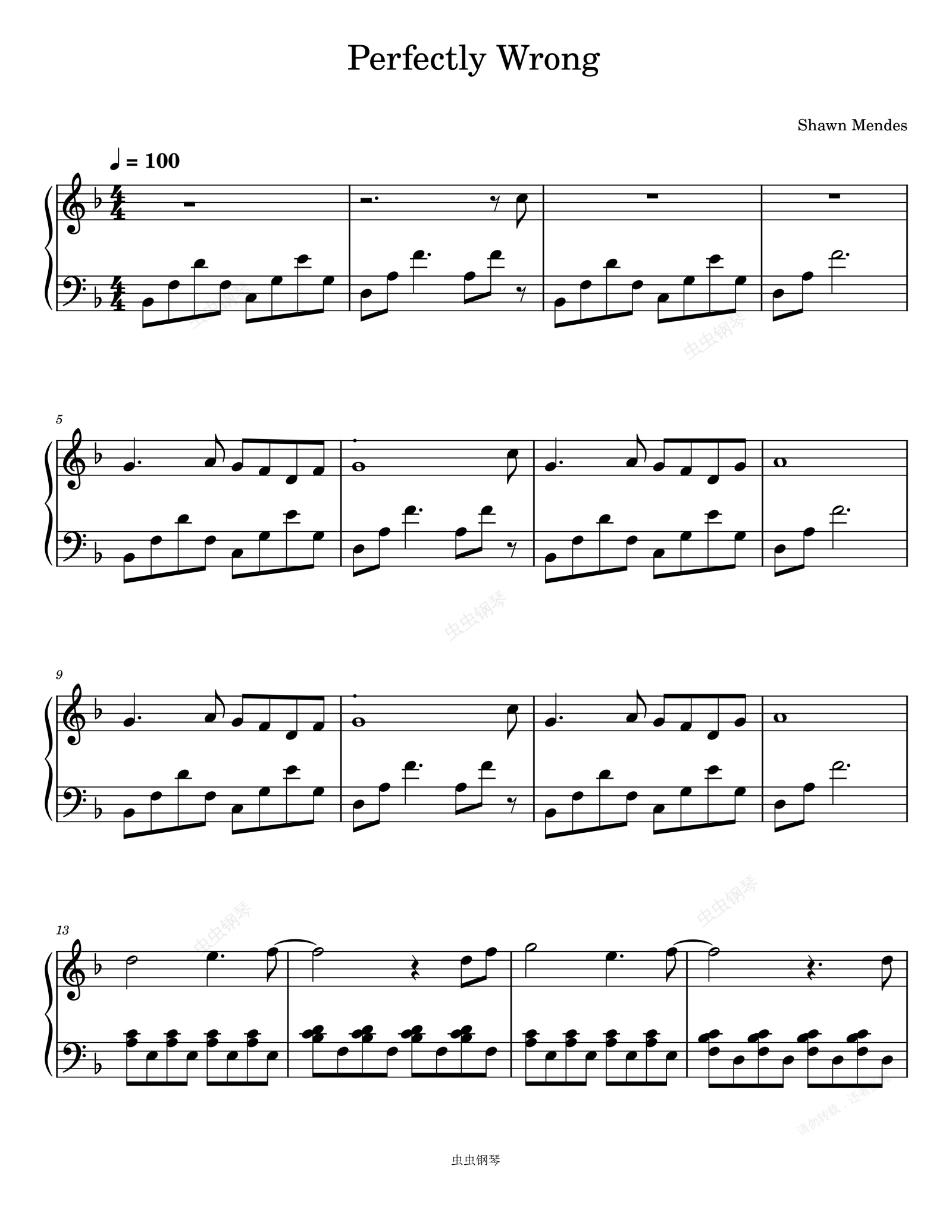 钢琴谱:Perfectly Wrong-Shawn Mendes