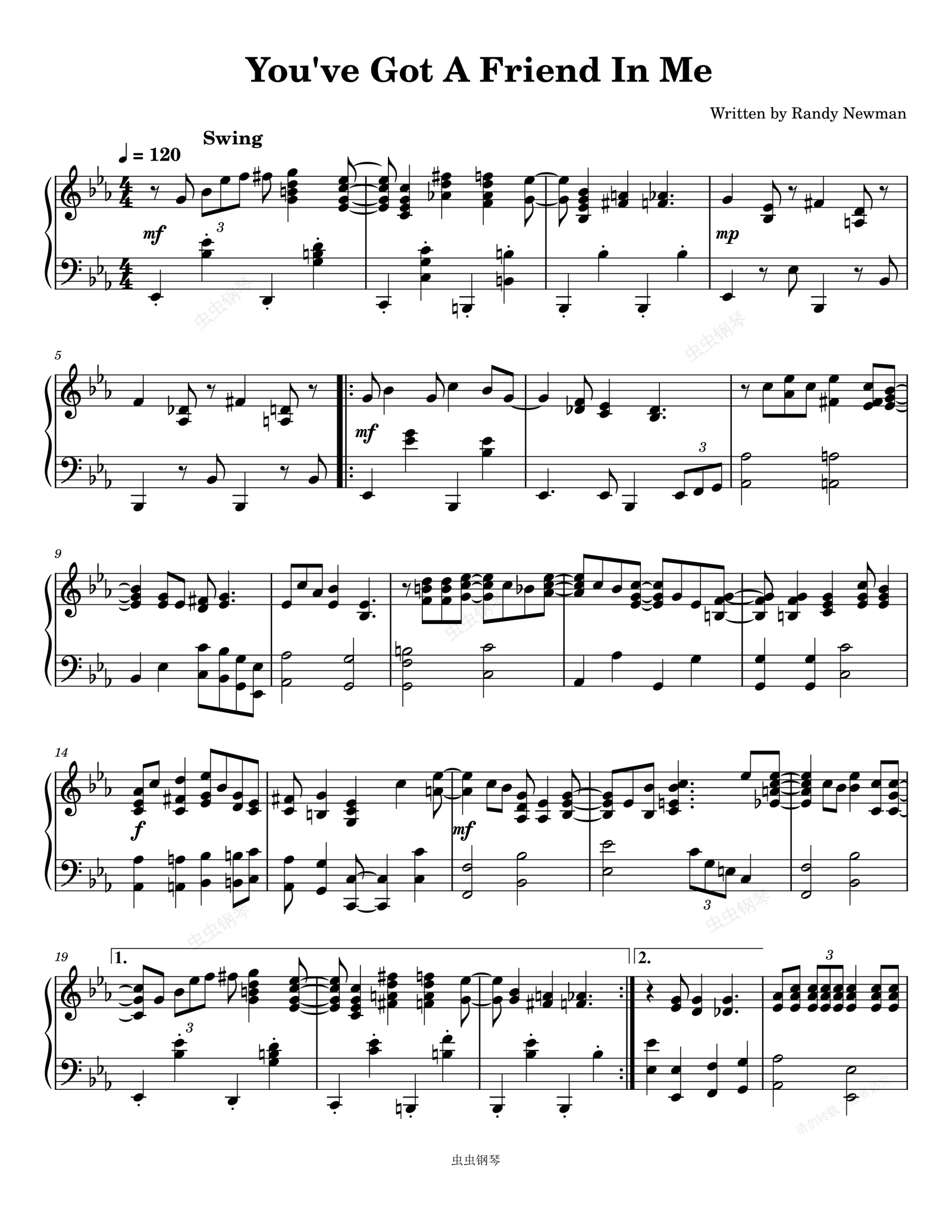 钢琴谱:You've Got A Friend In Me-Randy Newman