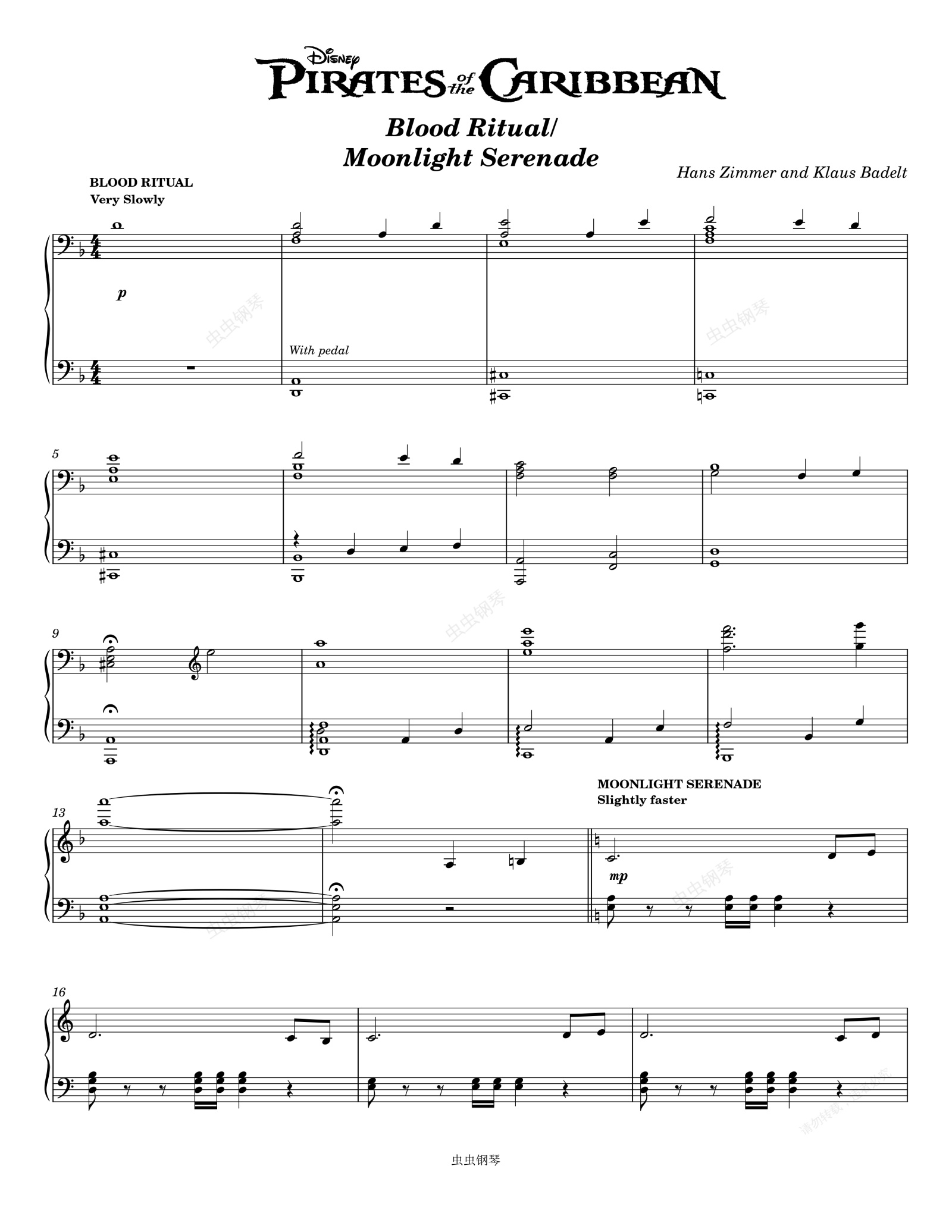 钢琴谱:加勒比海盗:黑珍珠号的诅咒 电影 Pirates of the Caribbean The Curse of the Black Pearl