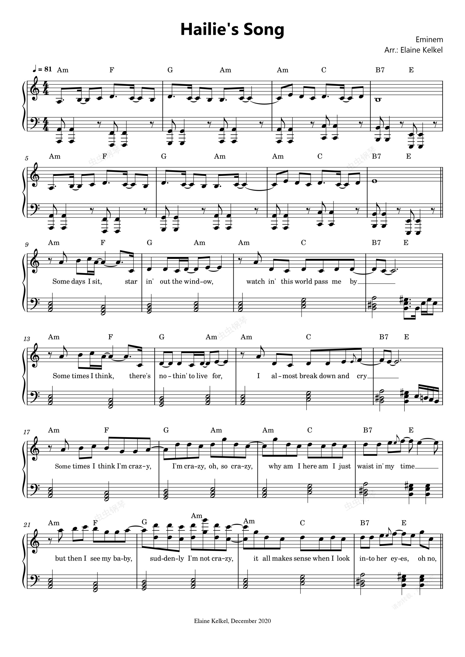 钢琴谱:Hailie's Song -Eminem