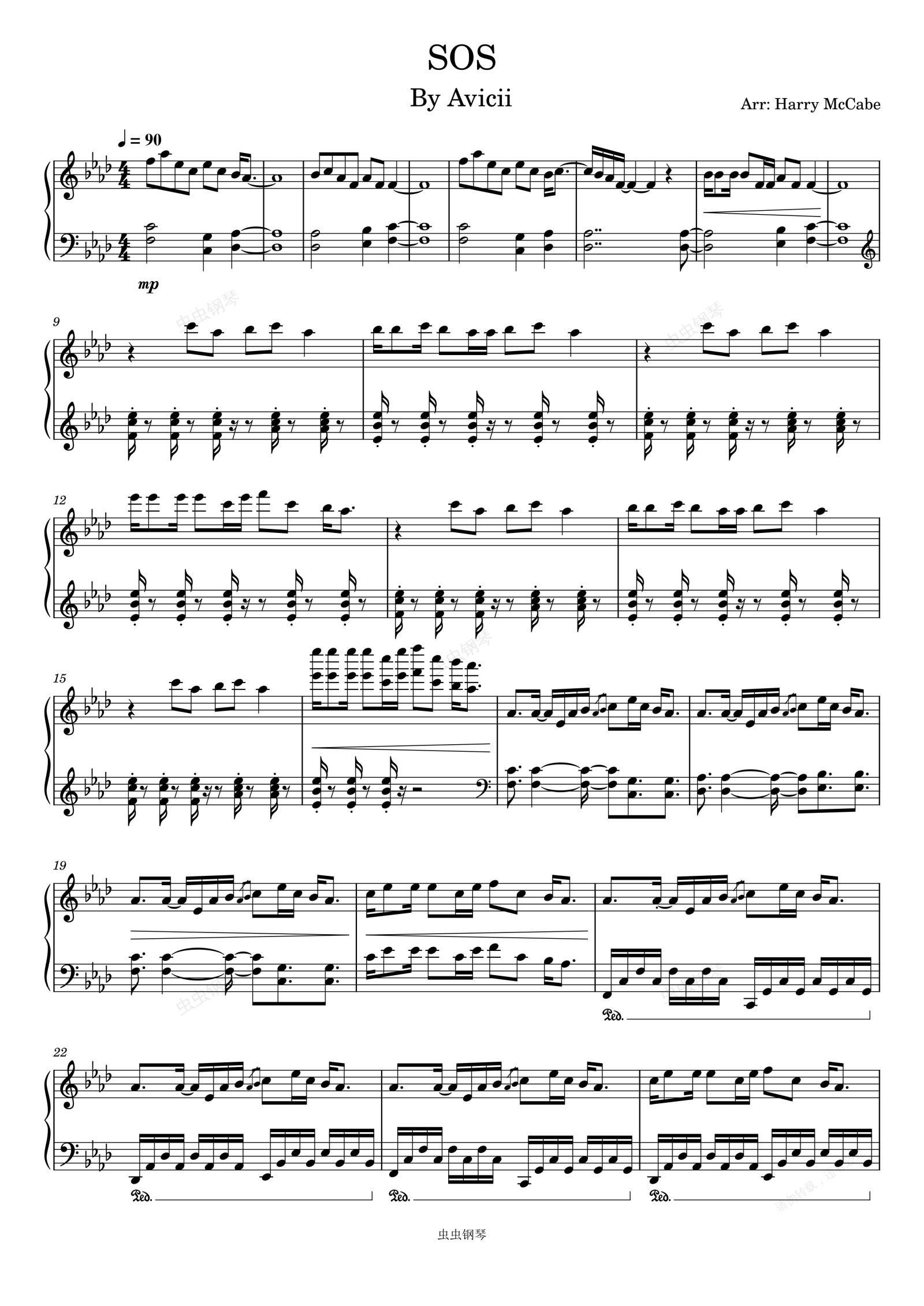 钢琴谱:SOS-Avicii / Aloe Blacc