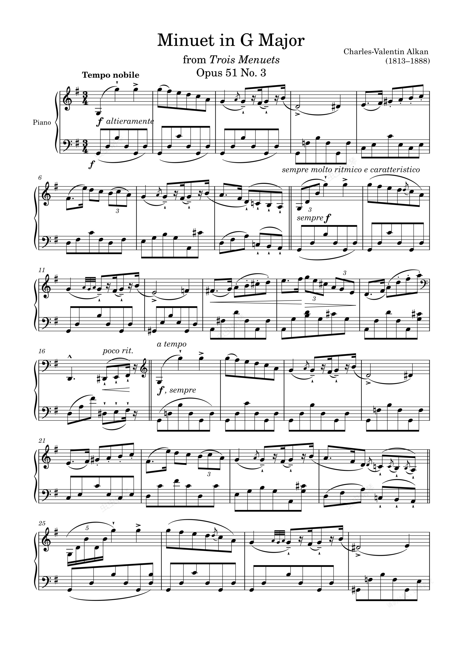 钢琴谱:Minuet Opus 51 No. 3 in G Major – Alkan