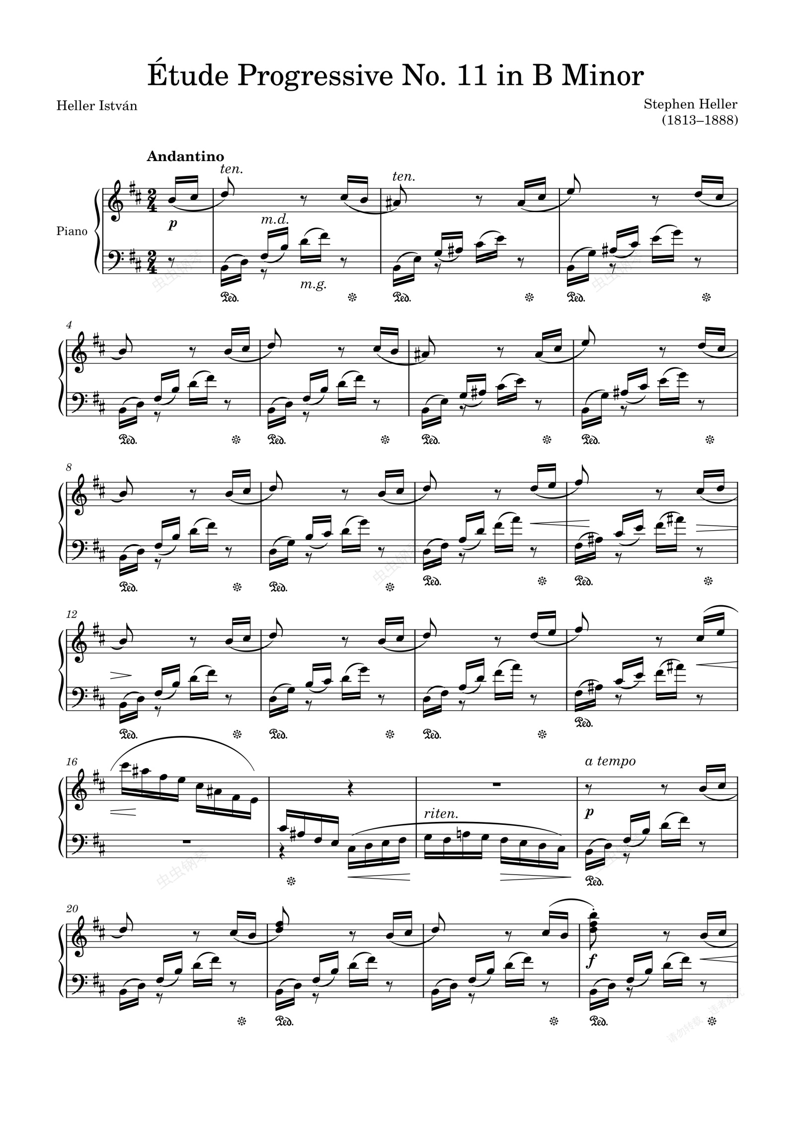钢琴谱:Étude Progressive Opus 46 No. 11 in B Minor – Heller