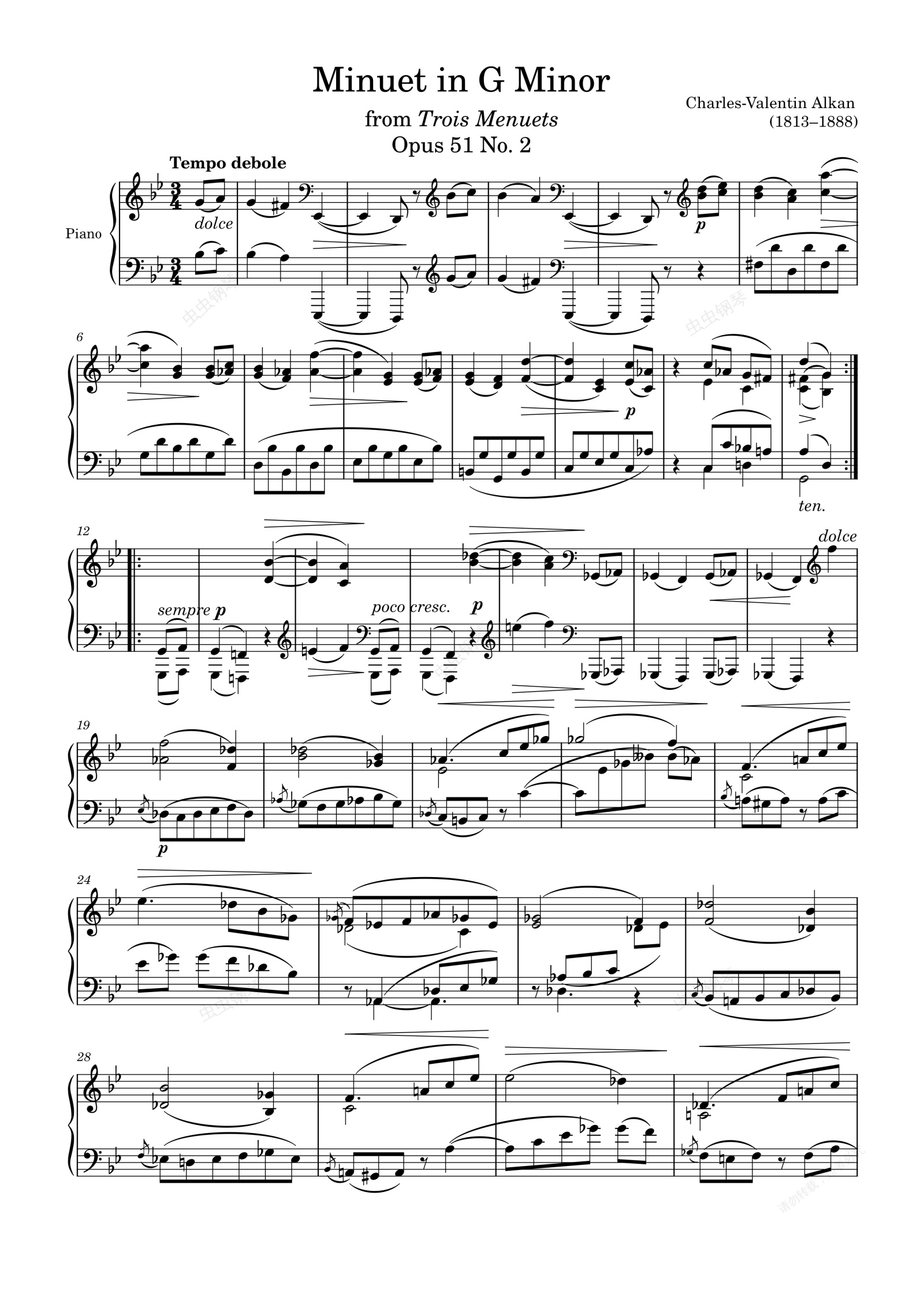 钢琴谱:Minuet Opus 51 No. 2 in G Minor – Alkan