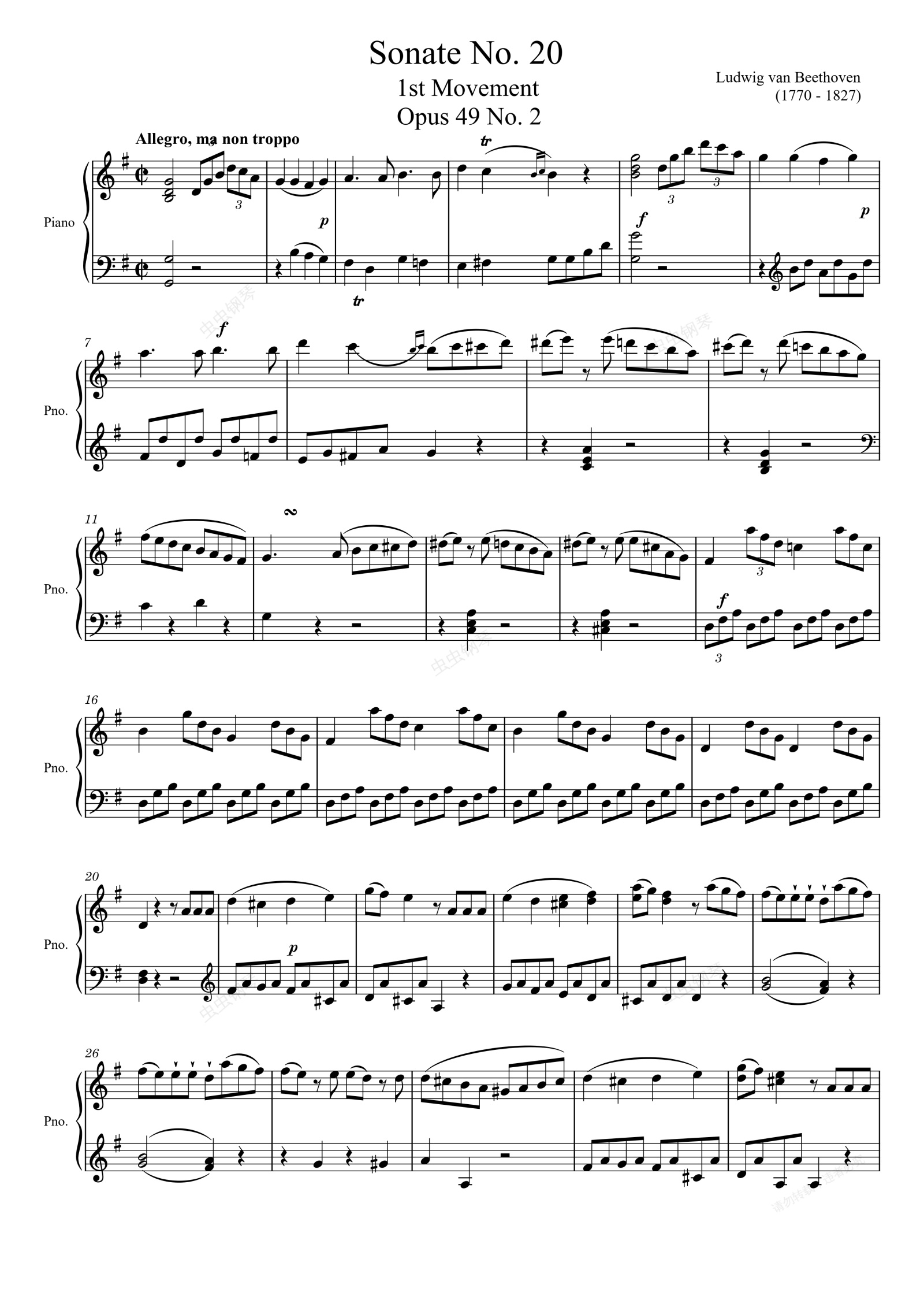 钢琴谱:贝多芬G大调第二十钢琴奏鸣曲 Sonate No. 20, 1st Movement