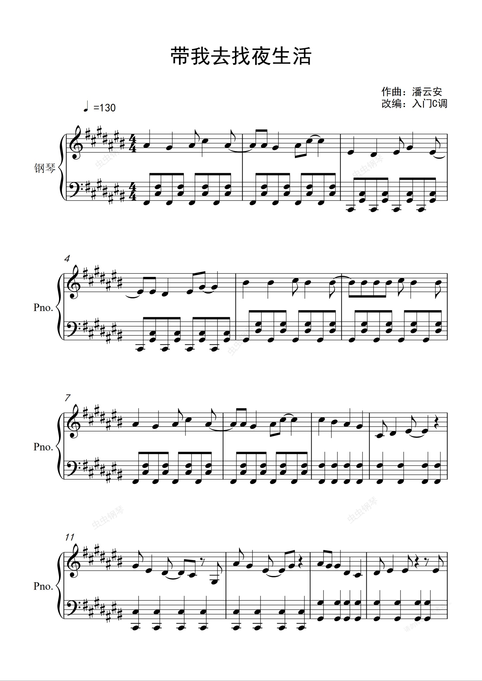 钢琴谱:告五人《带我去找夜生活》原调版本
