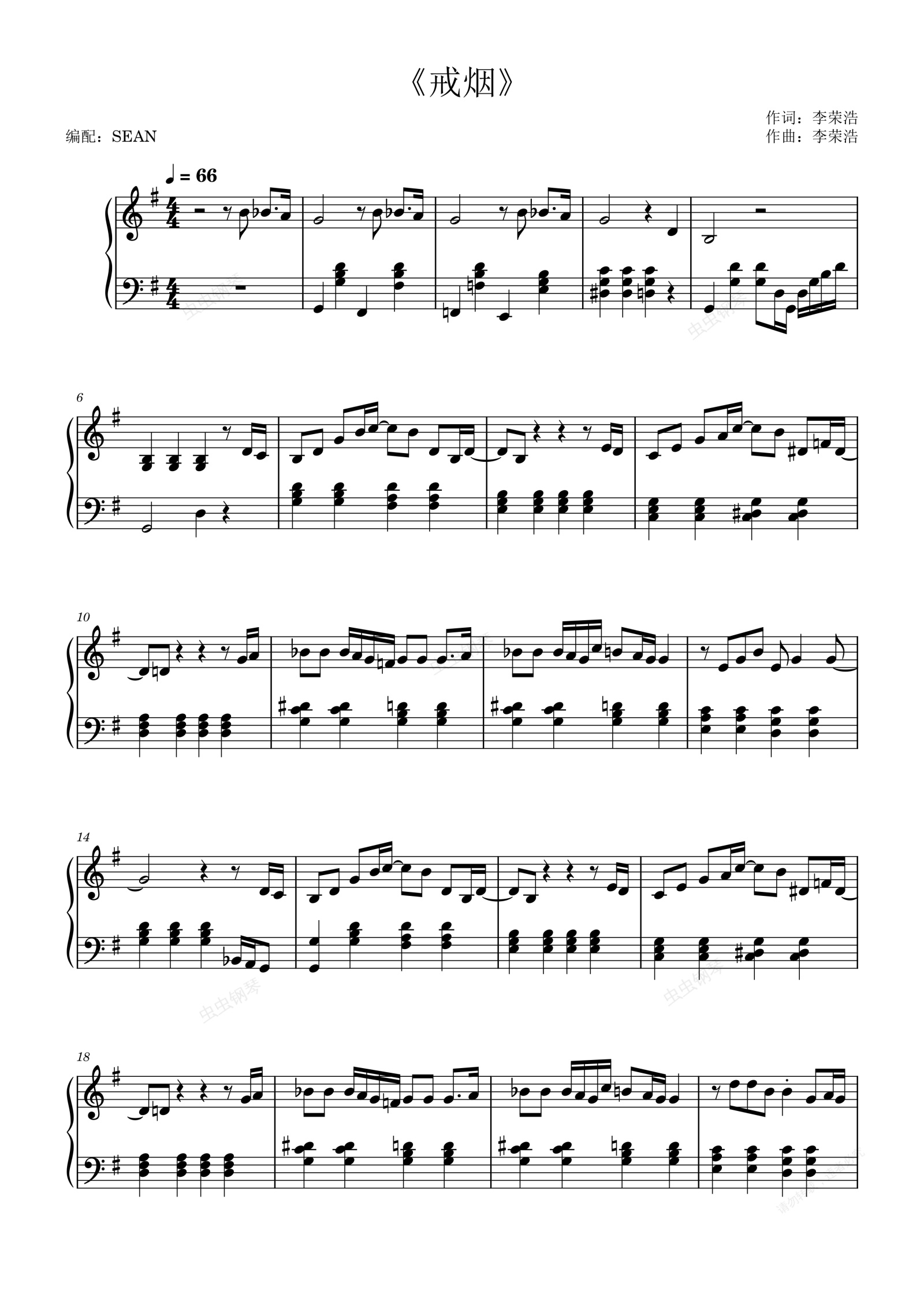 钢琴谱:《戒烟》李荣浩-G调 『 SEAN 编配 』完美演奏版