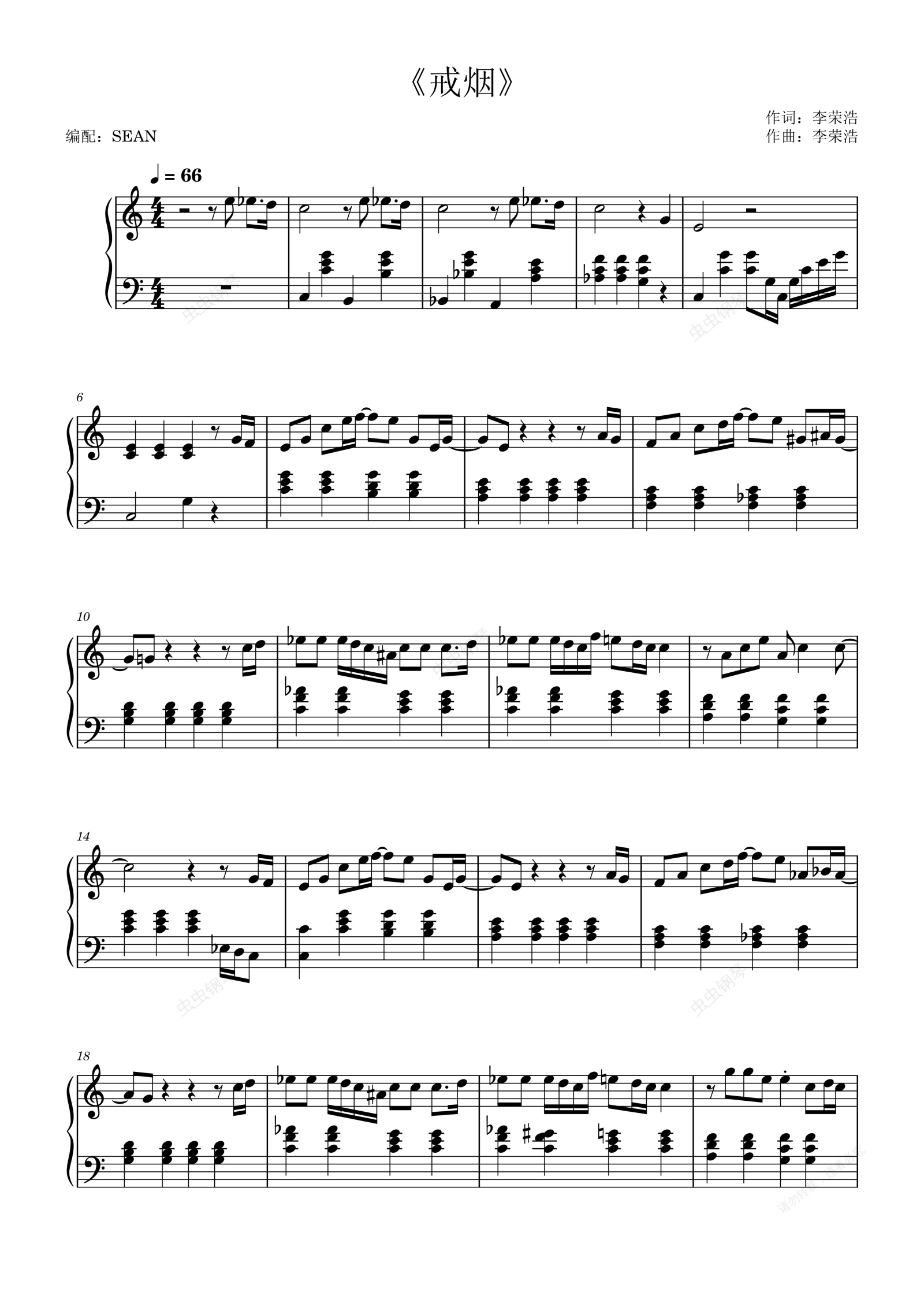 钢琴谱:《戒烟》李荣浩-C调 『 SEAN 编配 』完美演奏版
