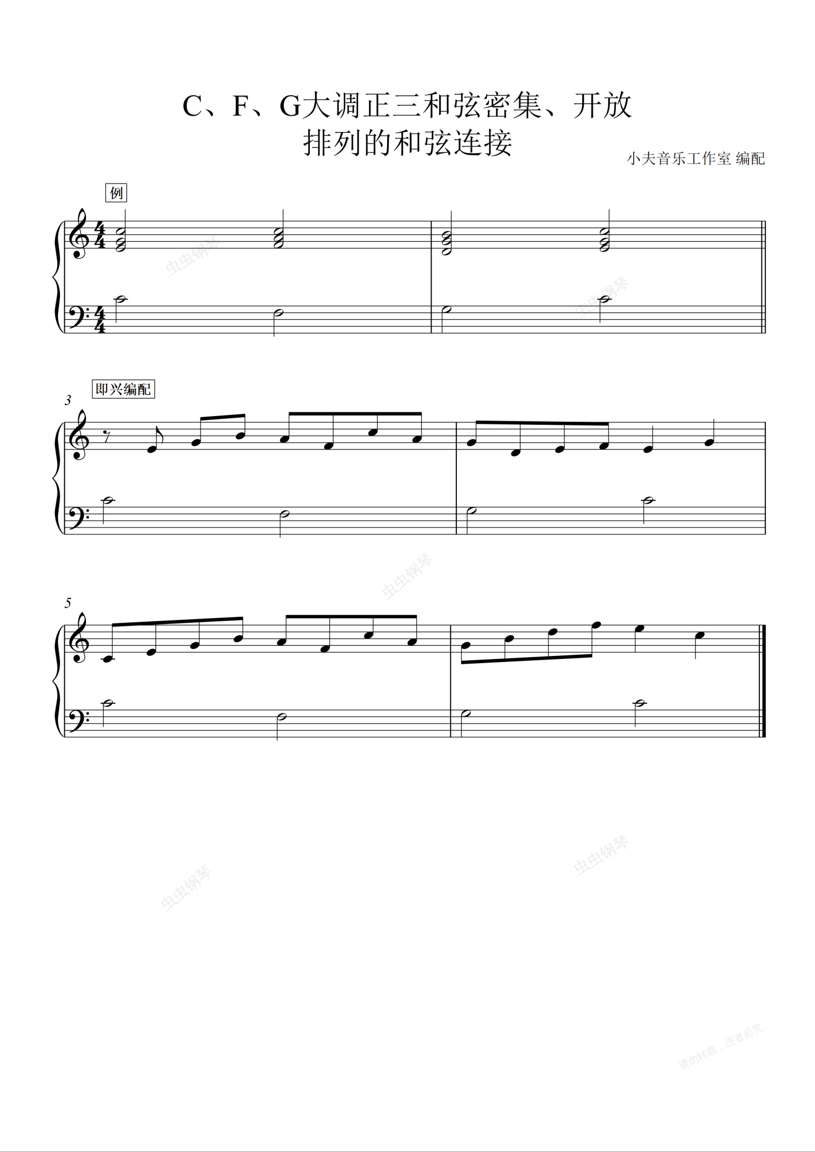 钢琴谱:C、F、G大调正三和弦密集、开放 排列的和弦连接