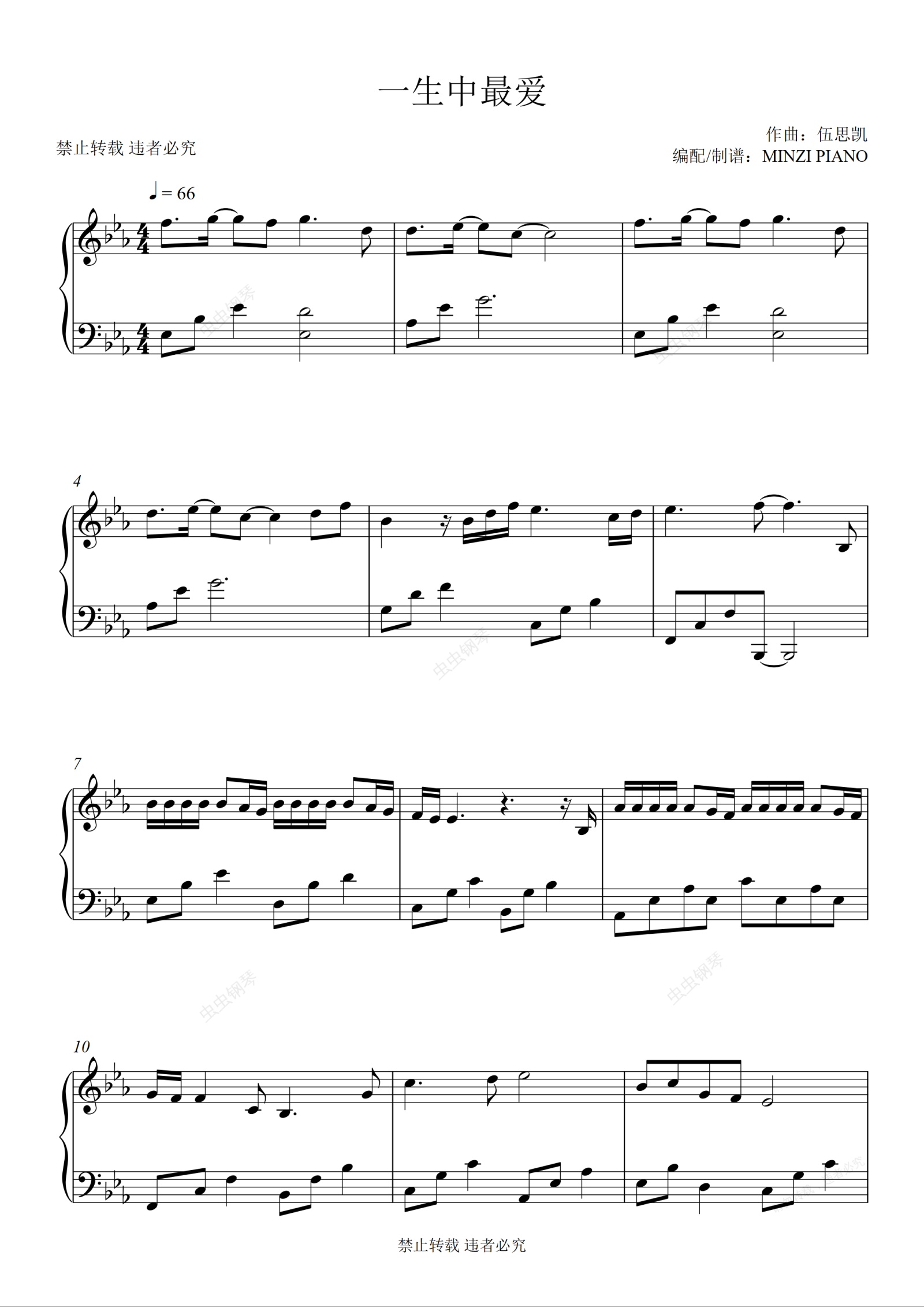 钢琴谱:谭咏麟《一生中最爱》好听易弹