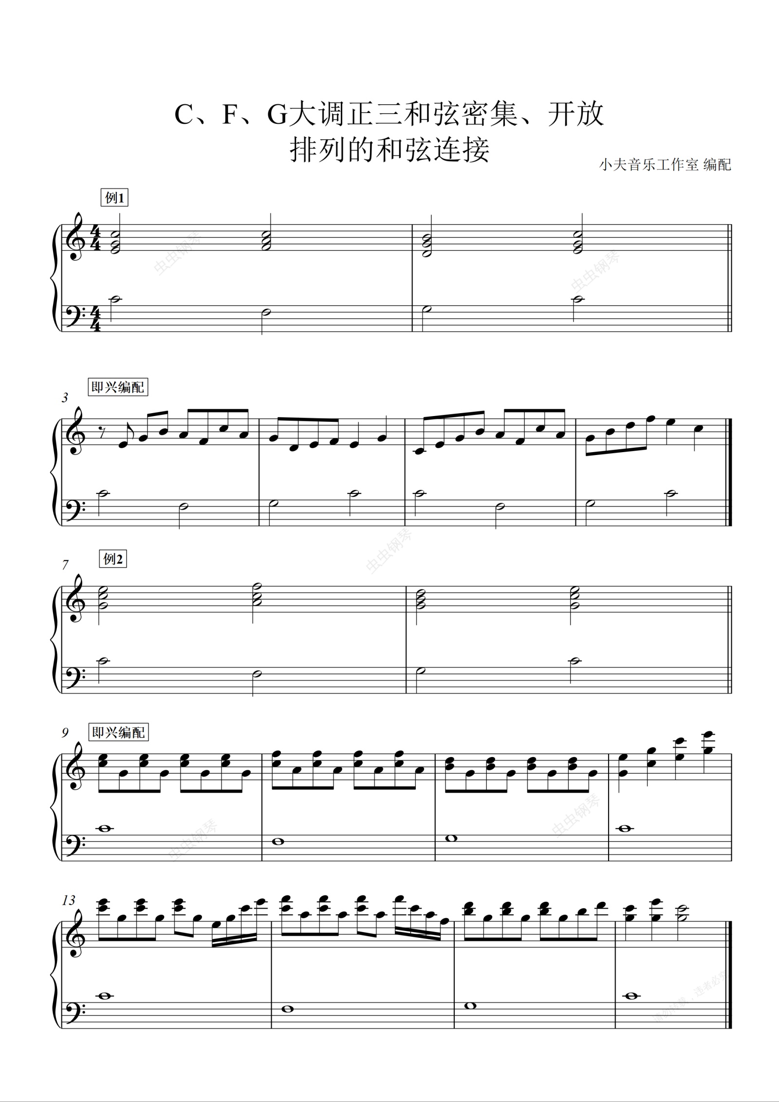 钢琴谱:即兴伴奏练习曲集一、正三和弦的连接