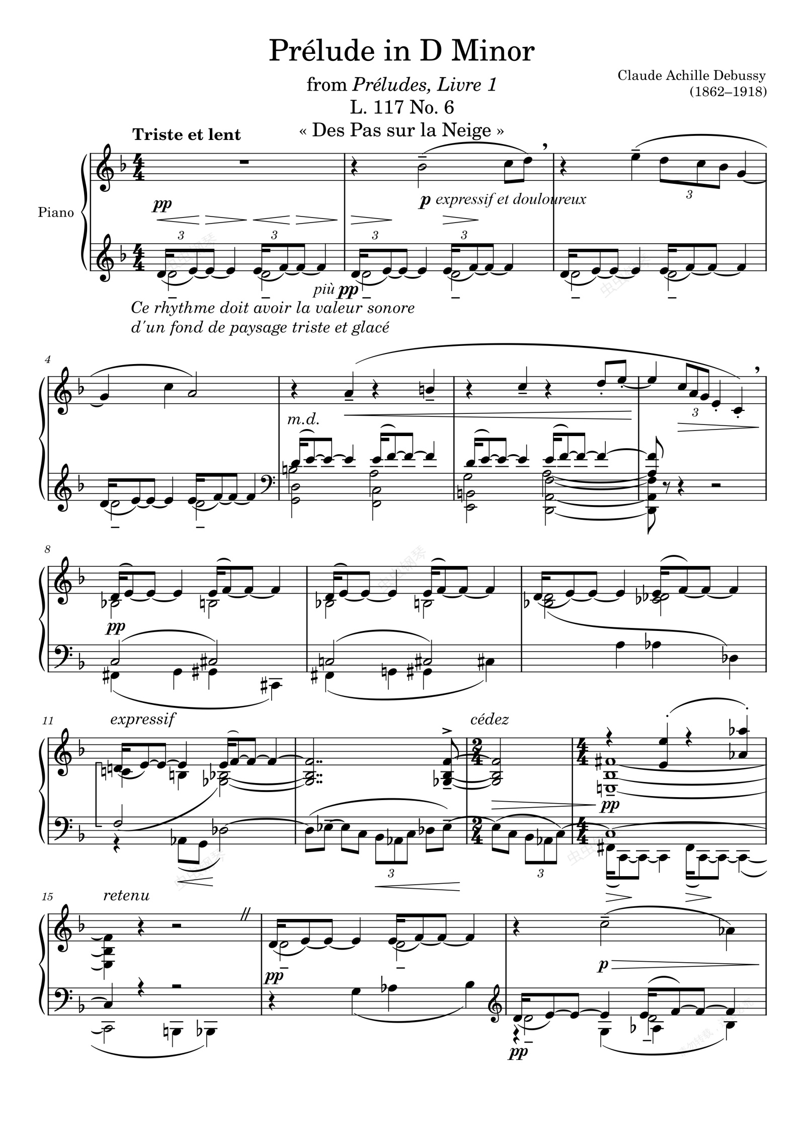 钢琴谱:Prélude L. 117 No. 6 in D Minor – Debussy