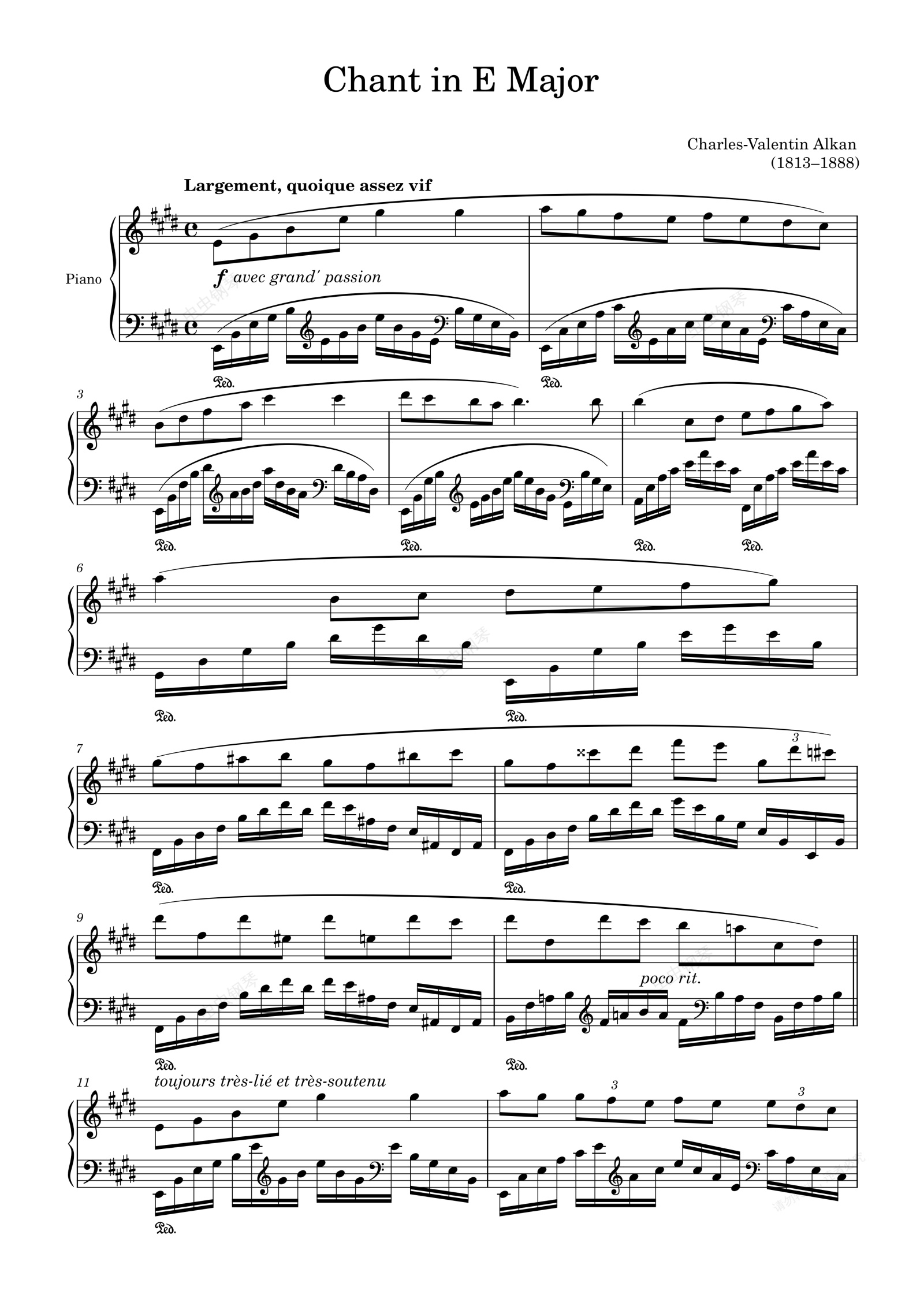 钢琴谱:Chant Opus 38a No. 1 in E Major – Alkan