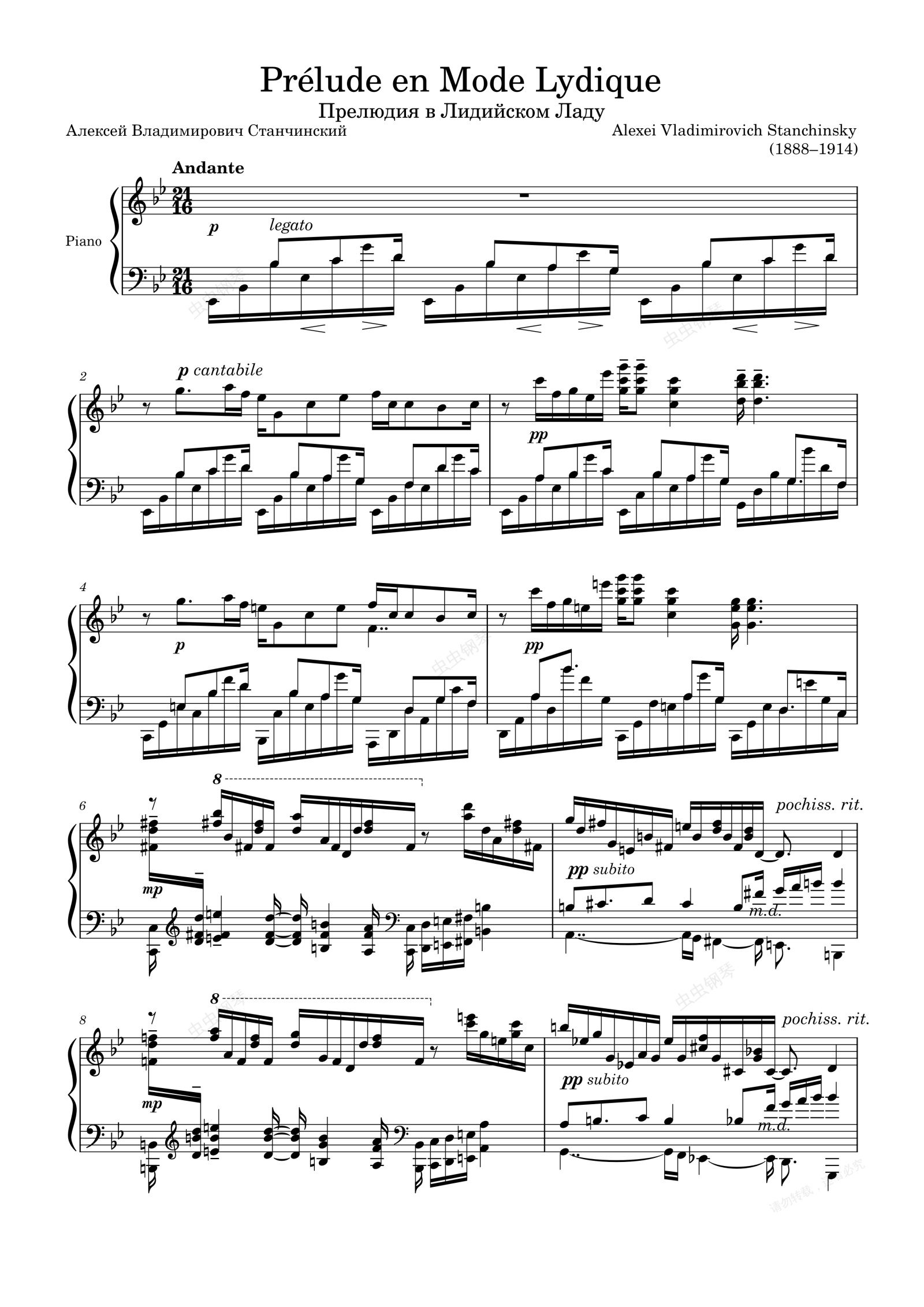 钢琴谱:Prélude en Mode Lydique – Stanchinsky