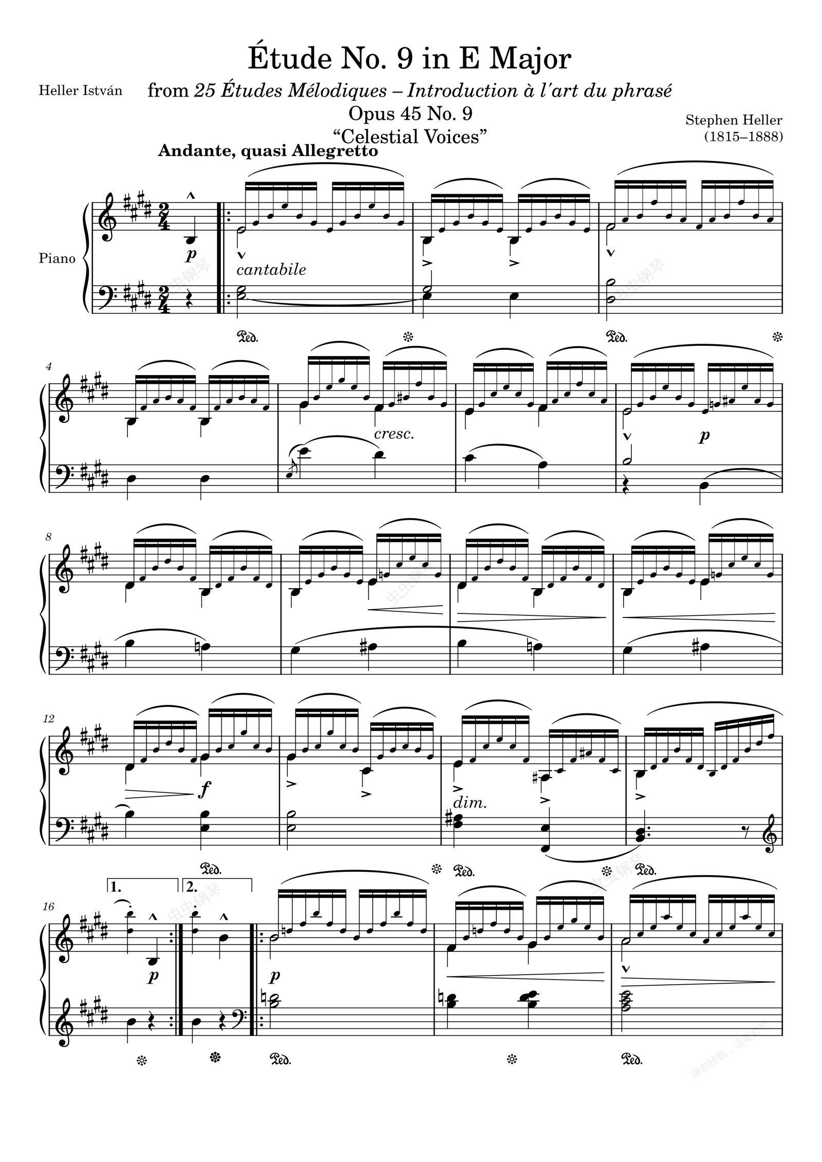 钢琴谱:Étude Opus 45 No. 9 in E Major – Heller