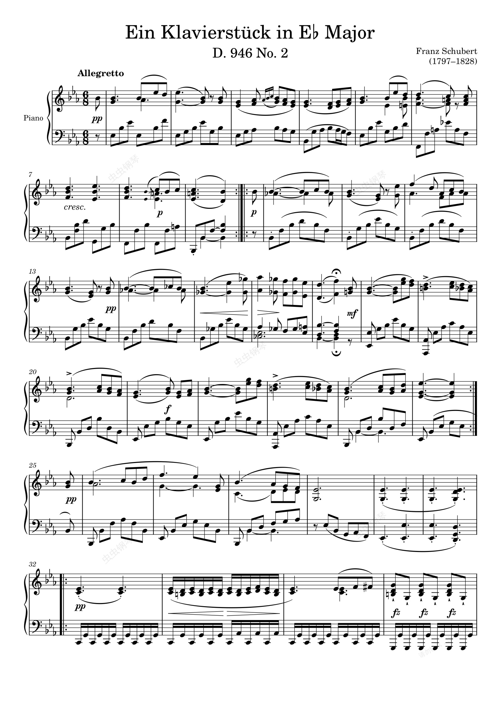 钢琴谱:Ein Klavierstück D. 946 No. 2 in E♭ Major