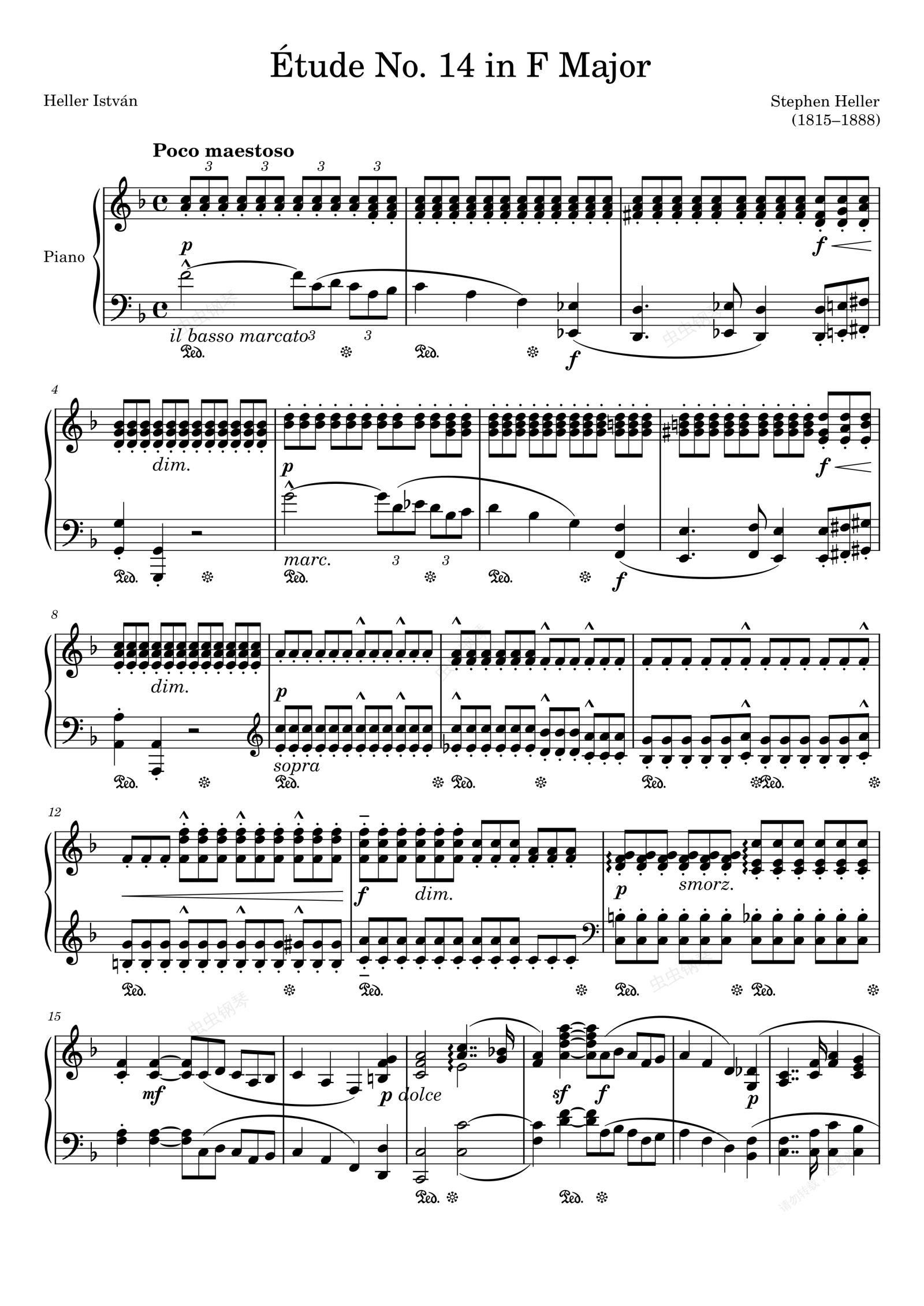 钢琴谱:Étude Opus 45 No. 14 in F Major – Heller