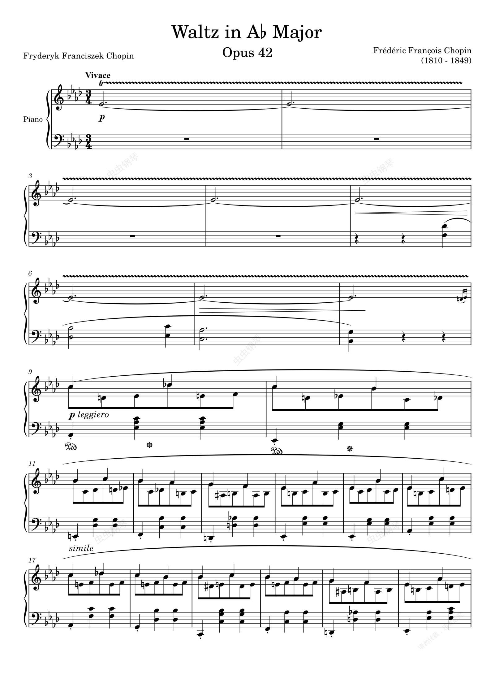 钢琴谱:降A大调圆舞曲 Waltz Opus 42 in A♭ Major
