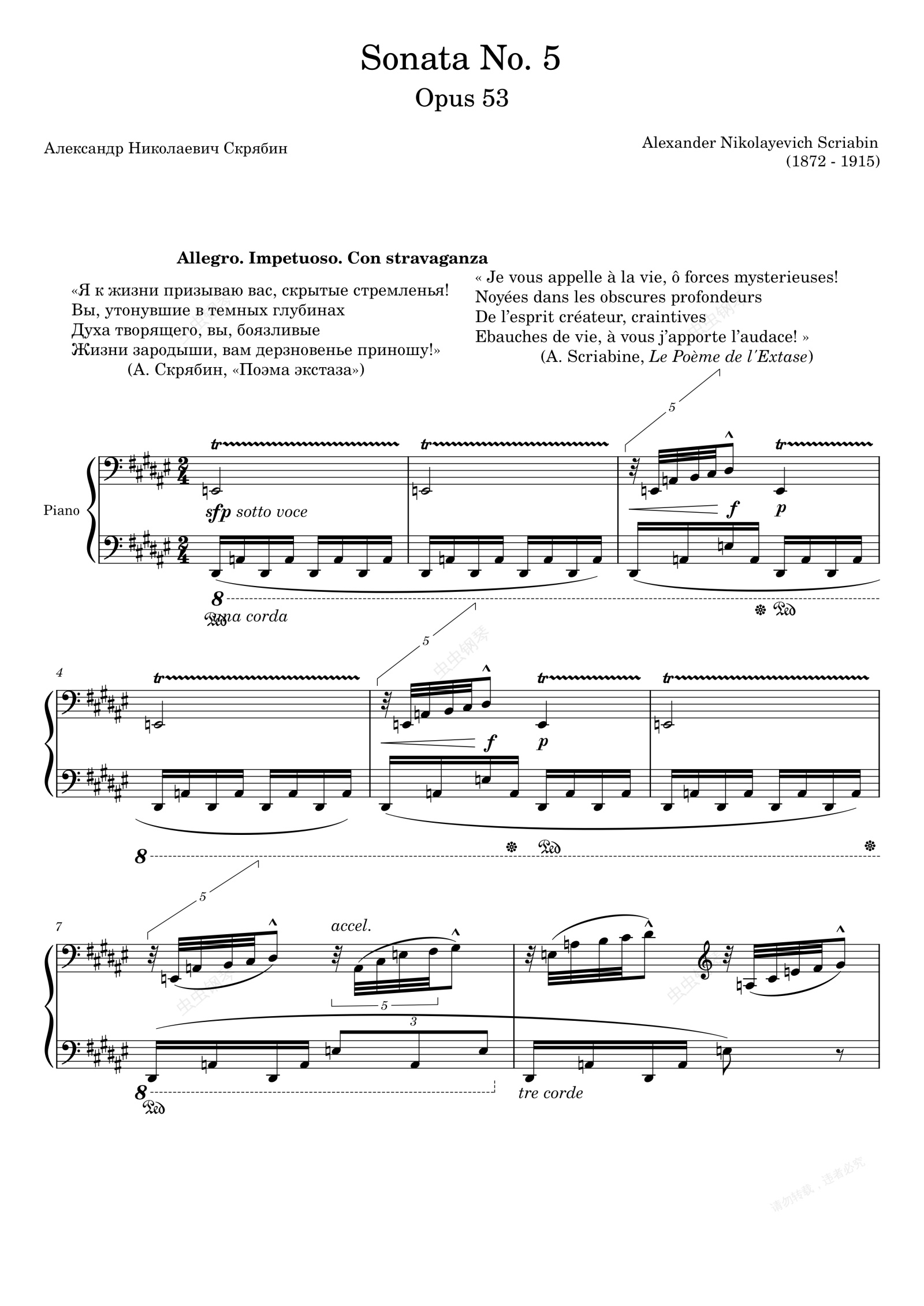 钢琴谱:Scriabin Piano sonata no.5 斯科里亚宾第五钢琴奏鸣曲