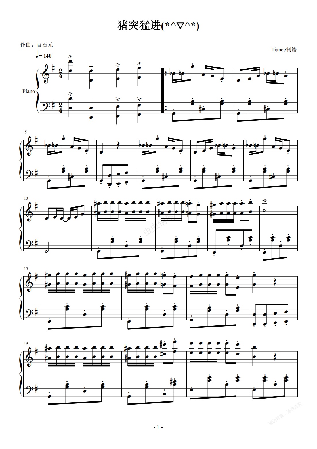 钢琴谱:《猪突猛进(*^▽^*)》独奏版,滑稽二连,鸽子来弹个~
