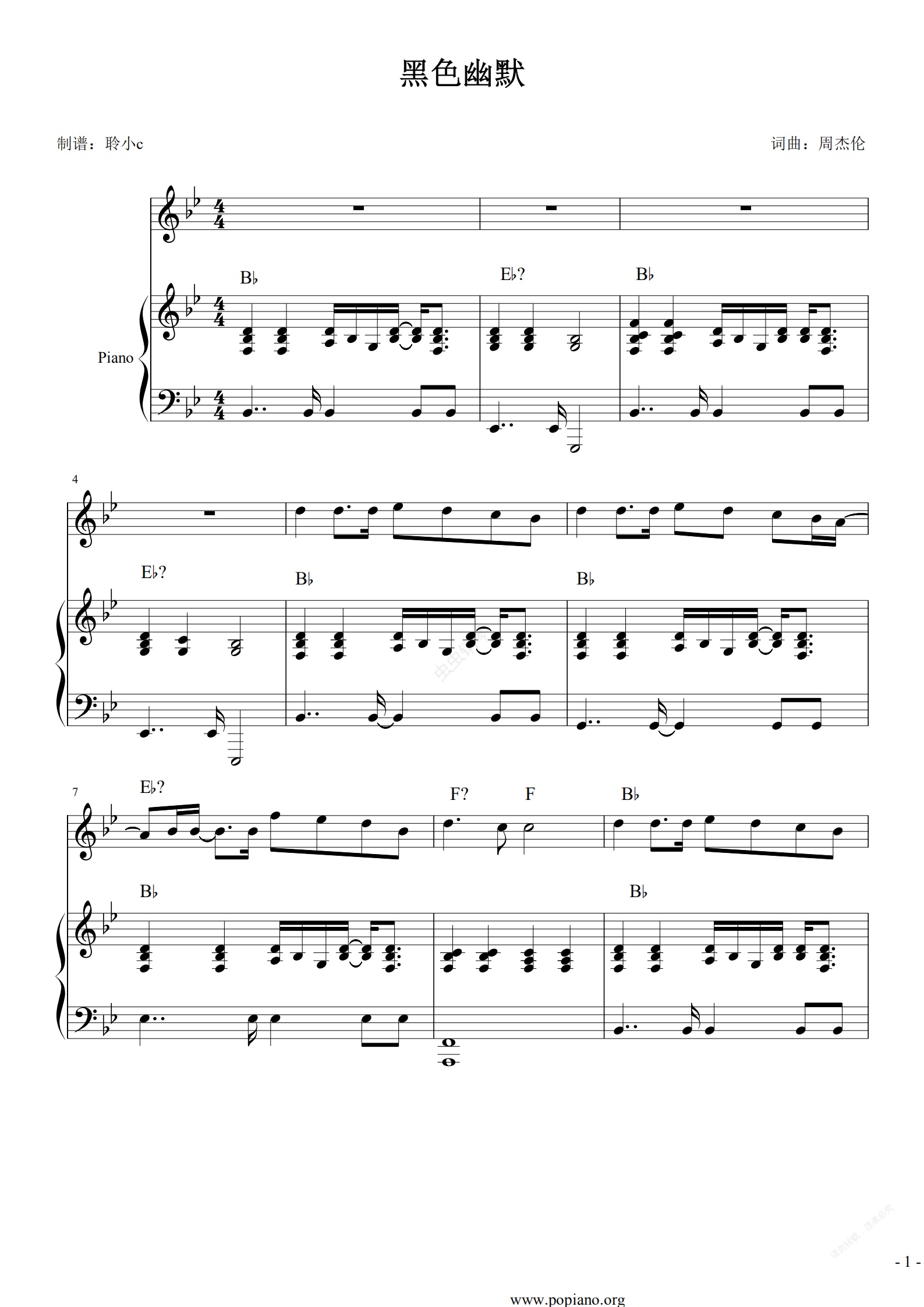 您的位置: 首页 > 钢琴谱库 > 黑色幽默钢琴谱-周杰伦