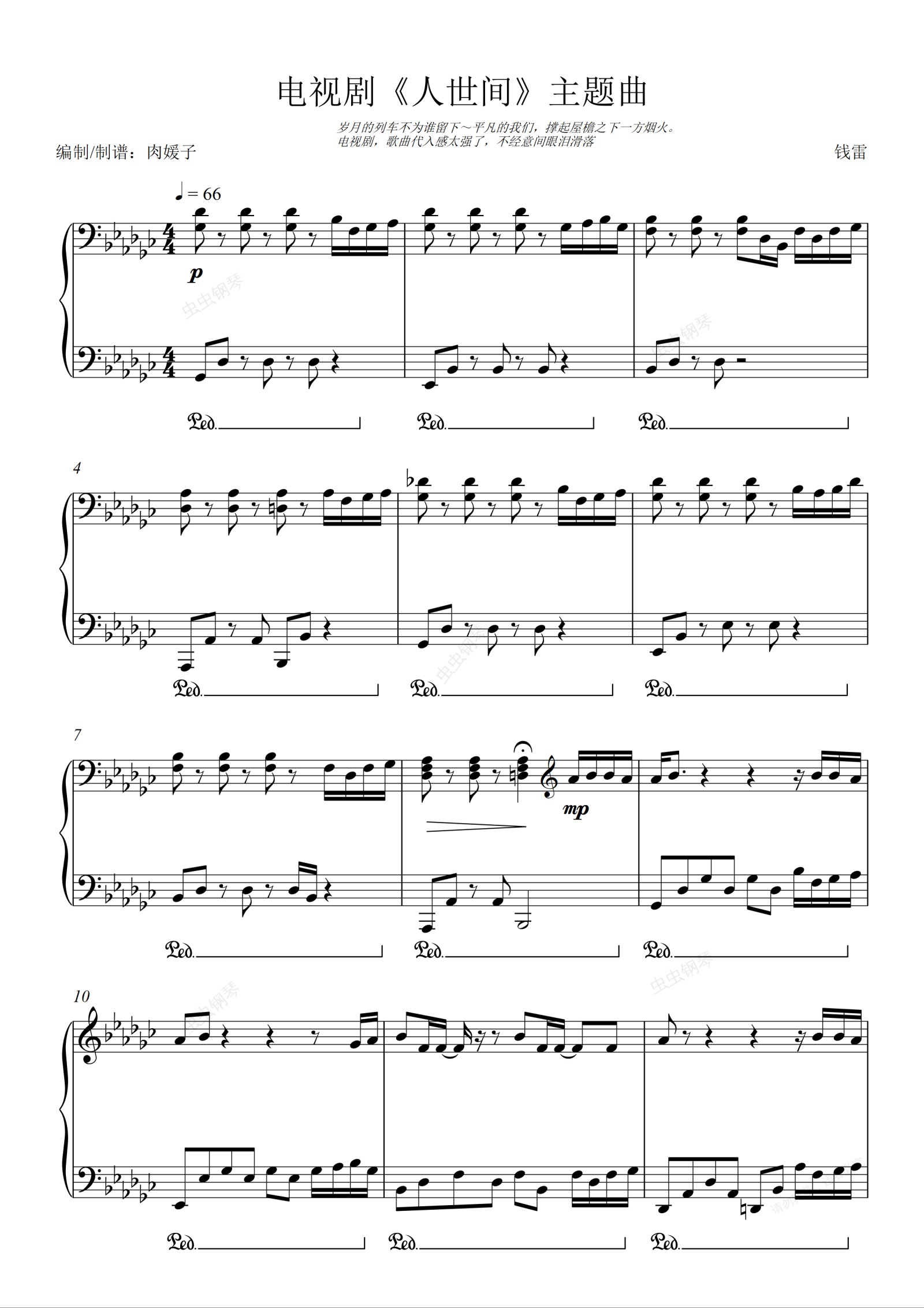 钢琴谱:电视剧《人世间》主题曲 人世间 【原调 极高还原演奏版】