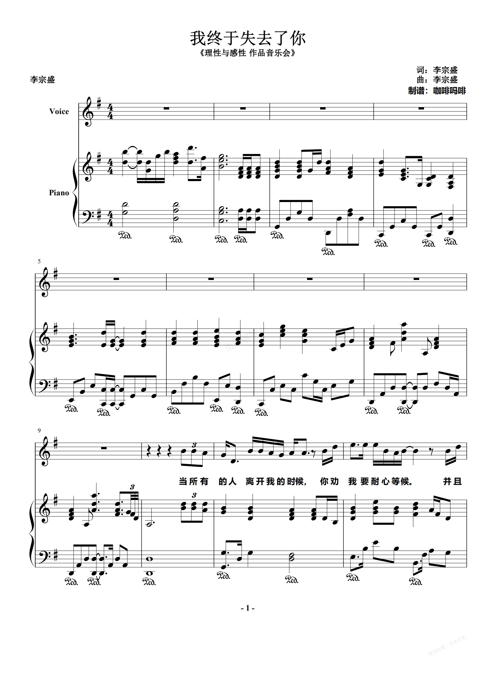 钢琴谱:我终于失去了你-李宗盛 钢琴完美伴奏谱
