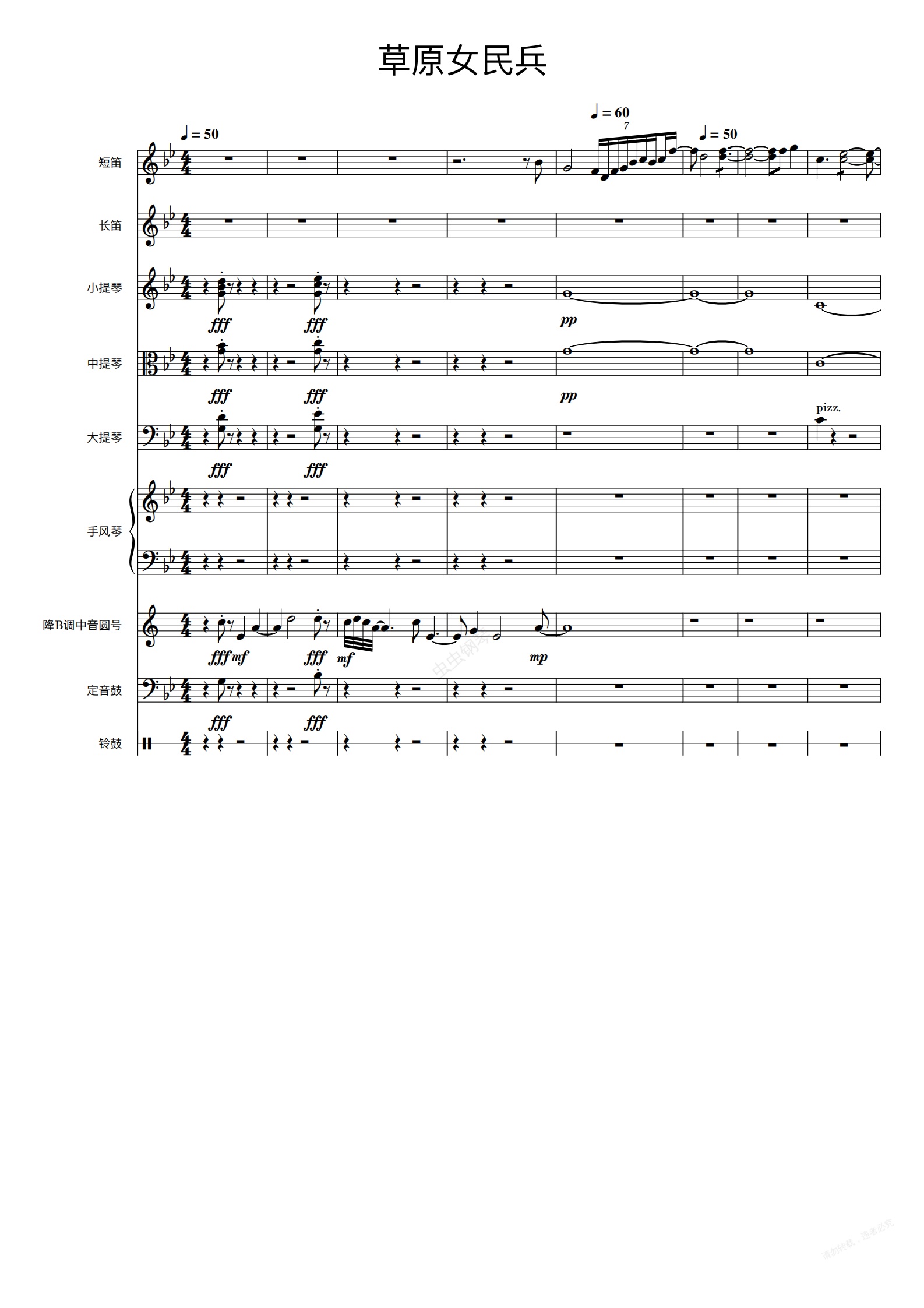 钢琴谱:草原女民兵节选