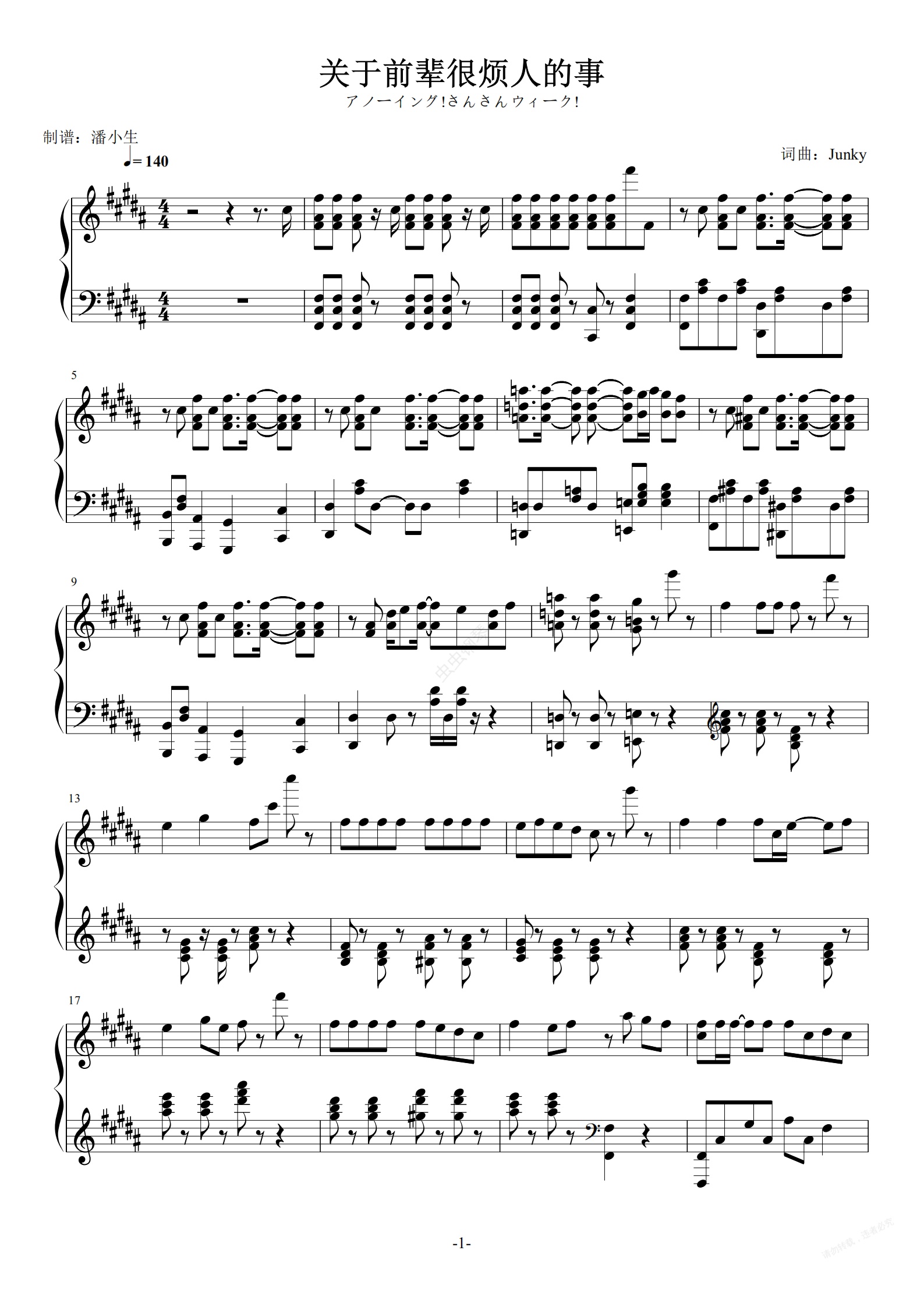 钢琴谱:关于前辈很烦人的事 OP 钢琴谱 五线谱 AI简谱 アノーイング!さんさんウィーク!