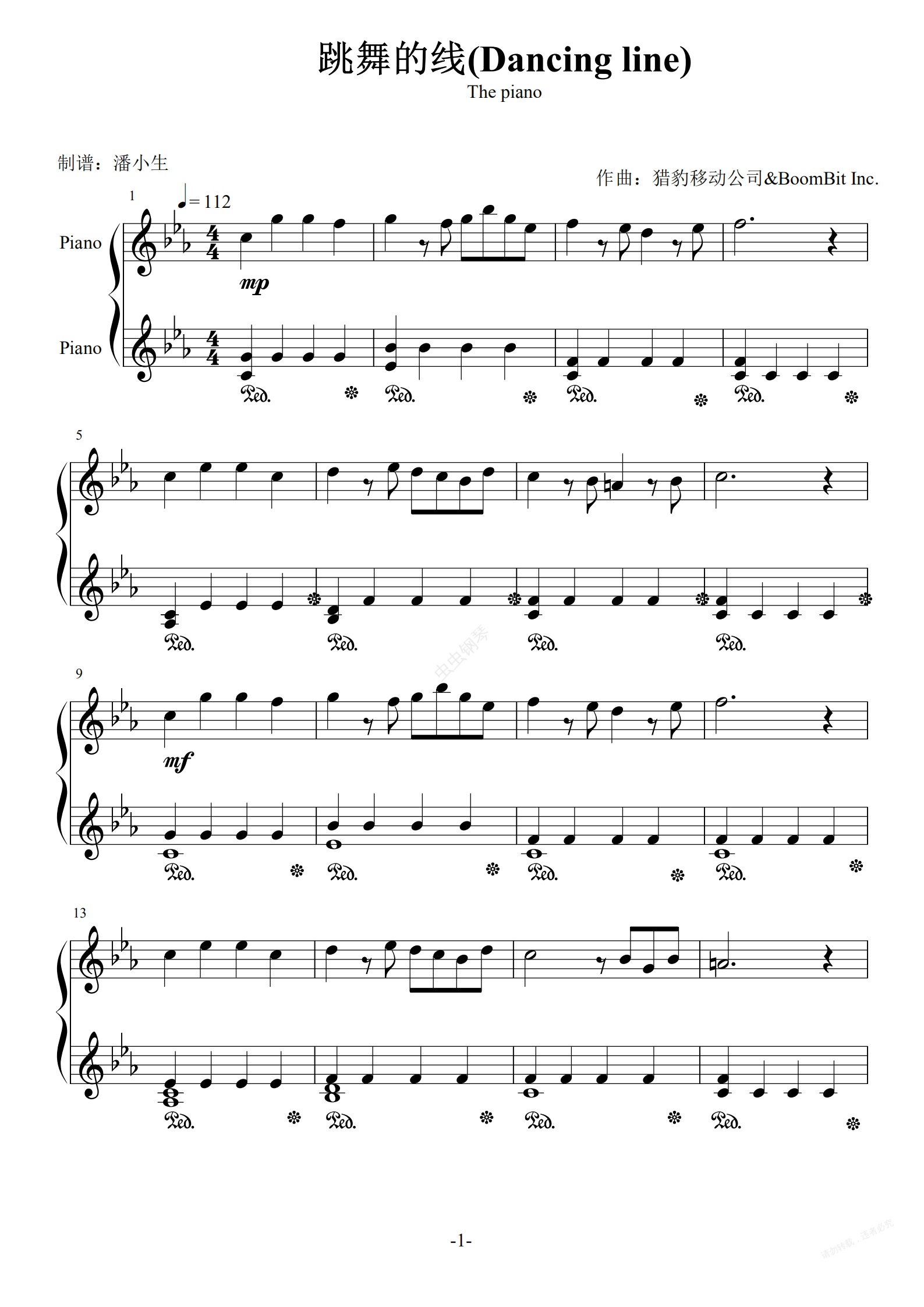 钢琴谱:跳舞的线(Dancing Line) 钢琴谱 五线谱 AI简谱 The Piano