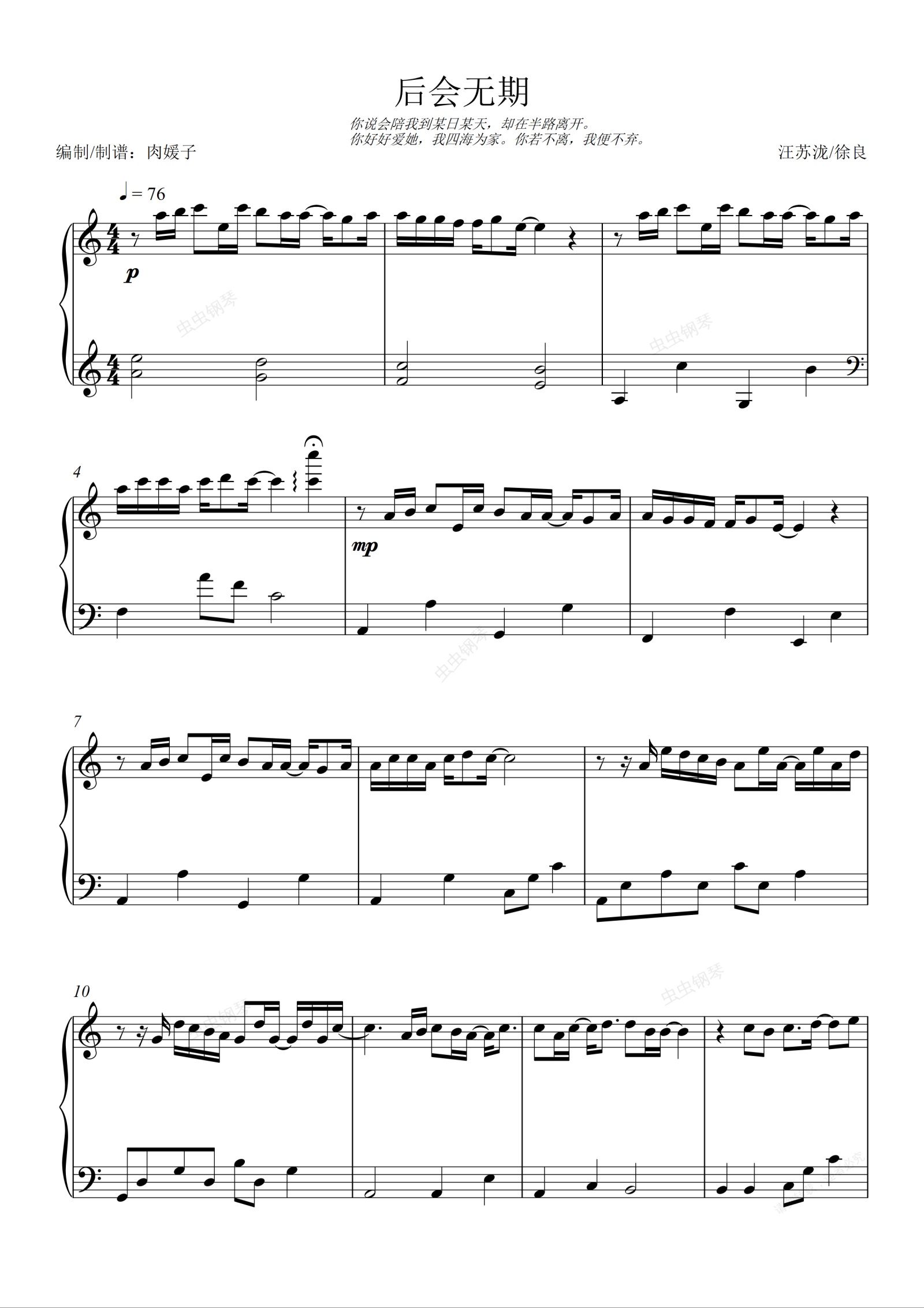 钢琴谱:后会无期- 汪苏泷 /徐良 【抒情简单独奏版】